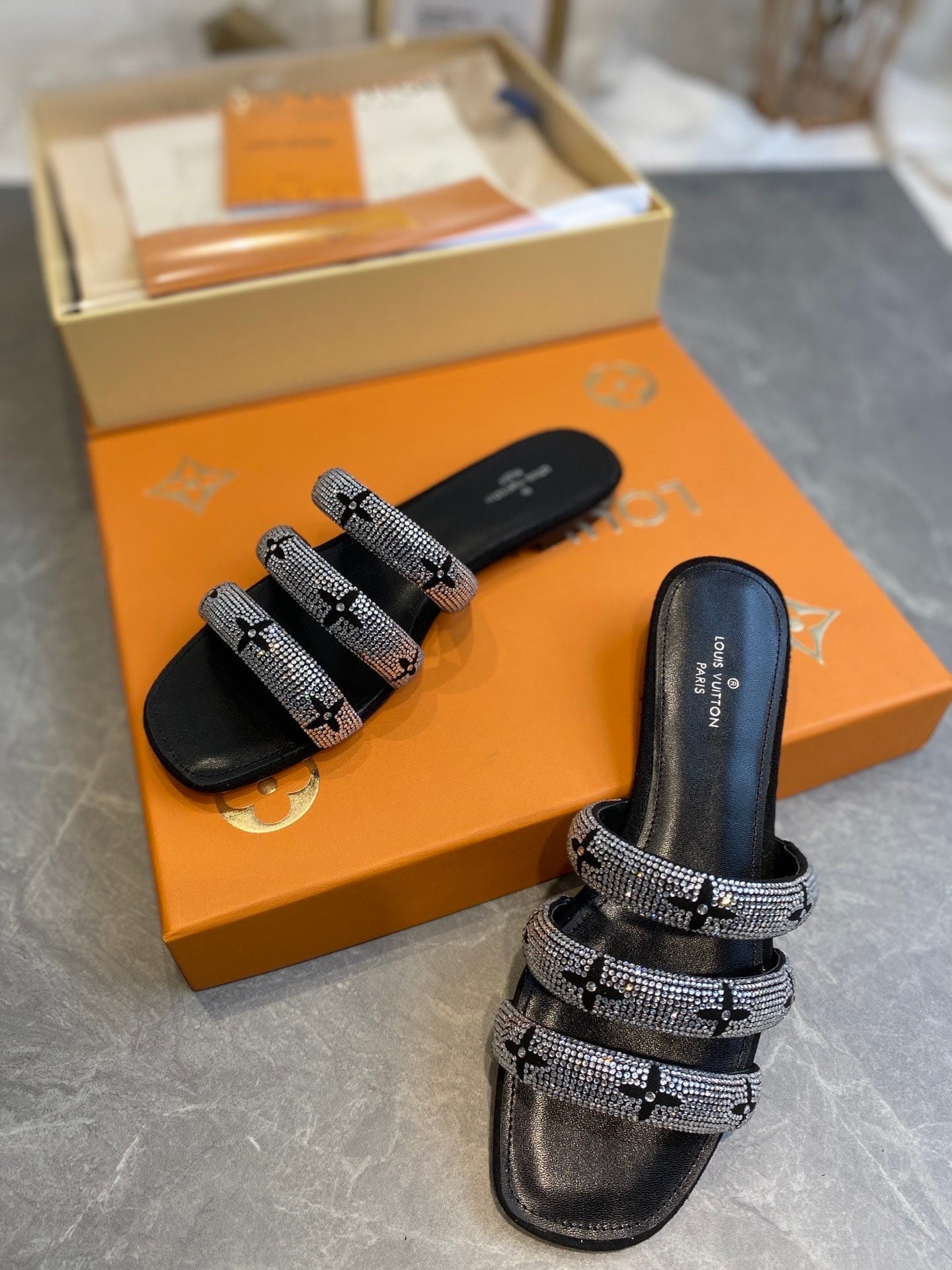 Be the first to review “Louis Vuitton Appeal Flat Mules Slides Black 1A95T8” Cancel reply