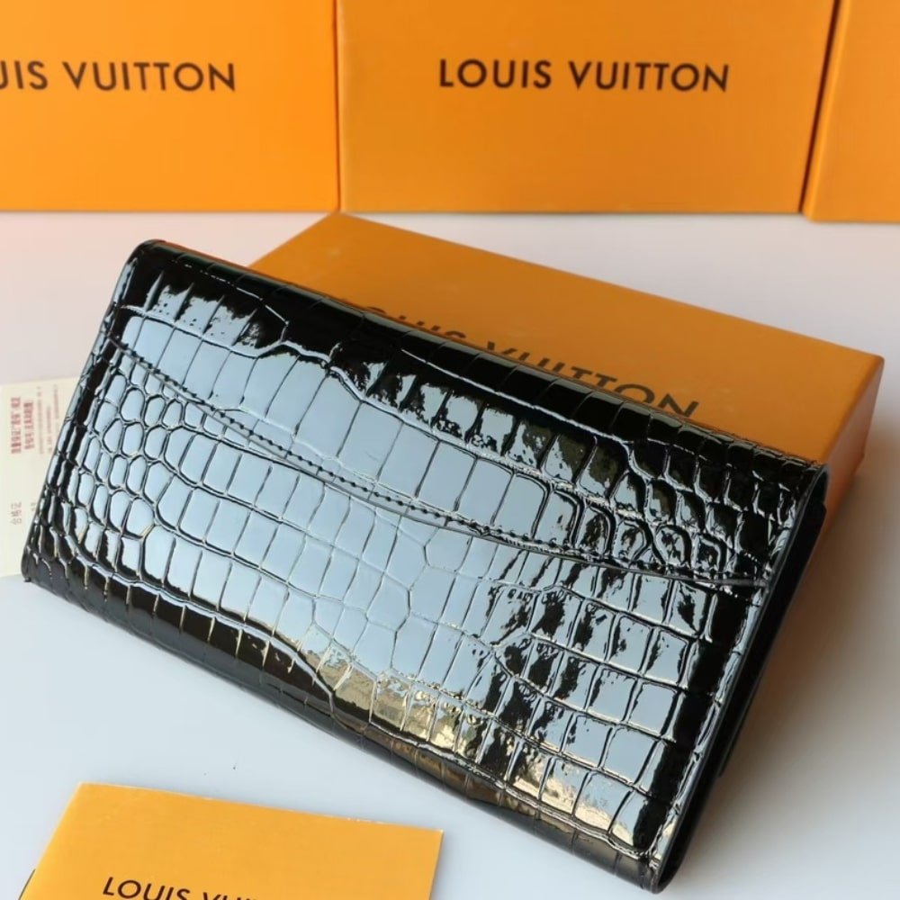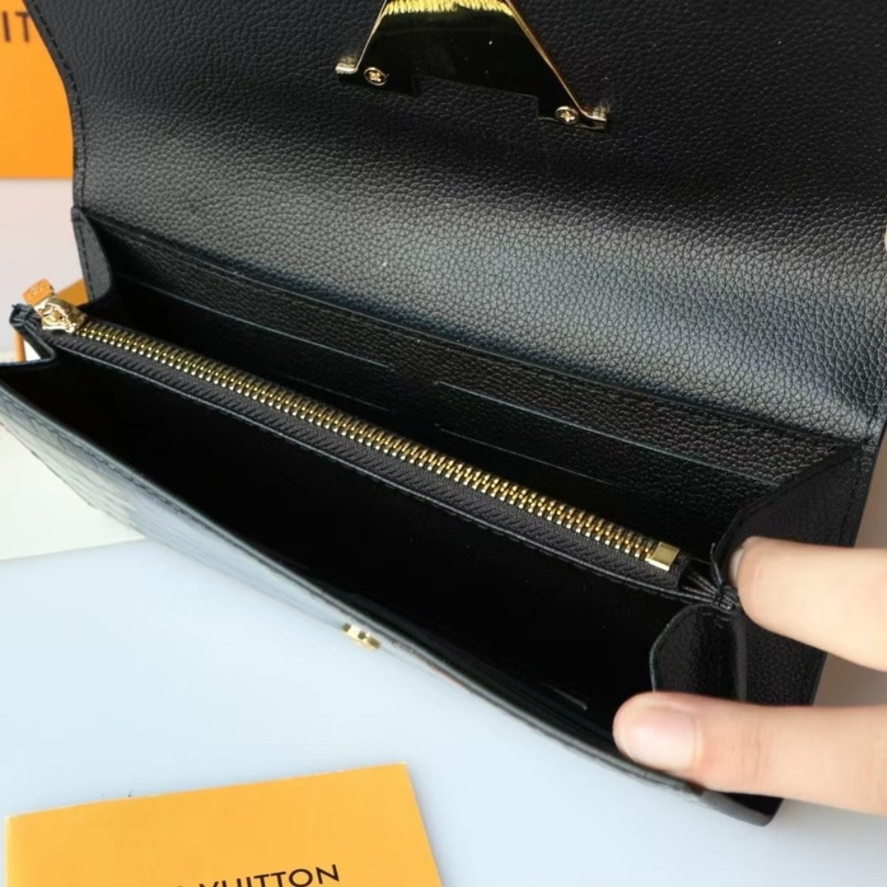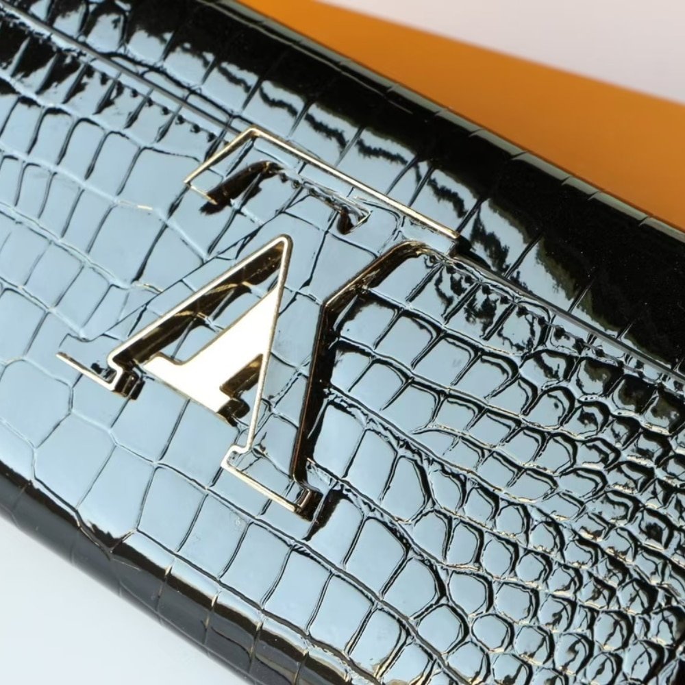 Louis Vuitton Capucines Crocodile Leather Long Wallet Black 20Cm