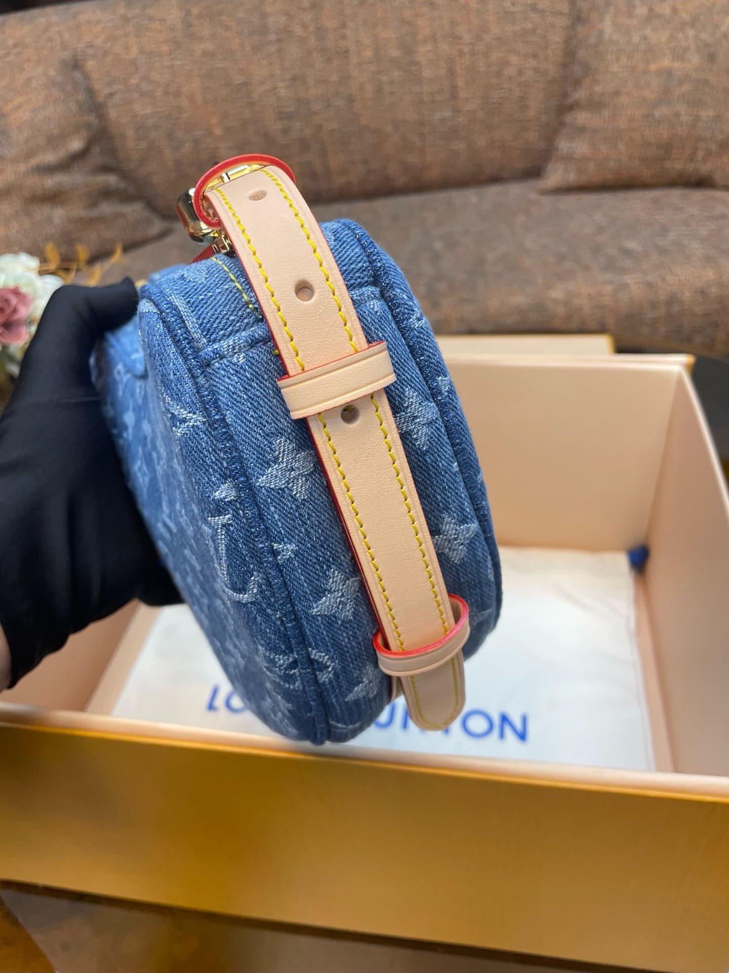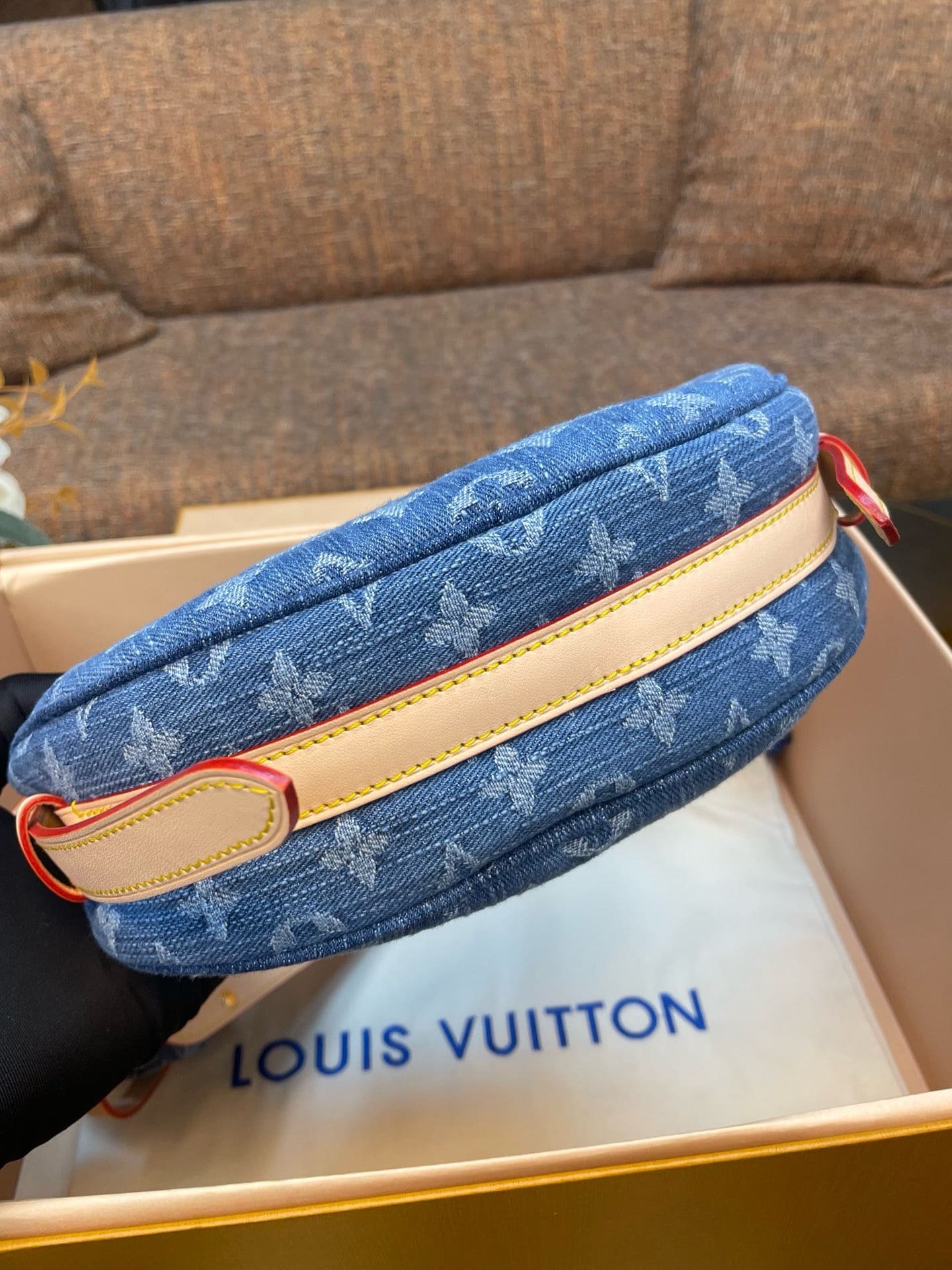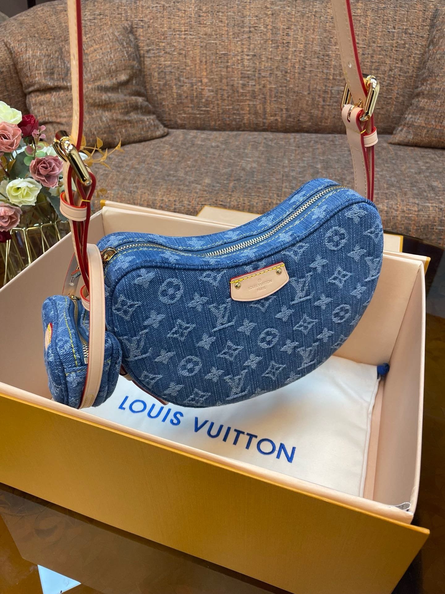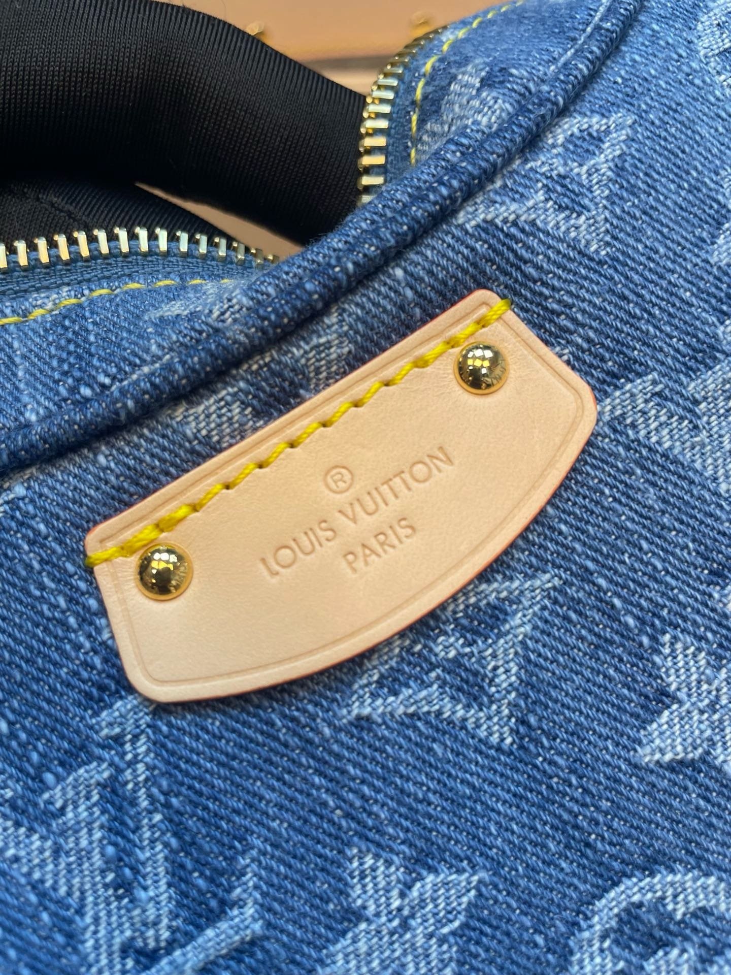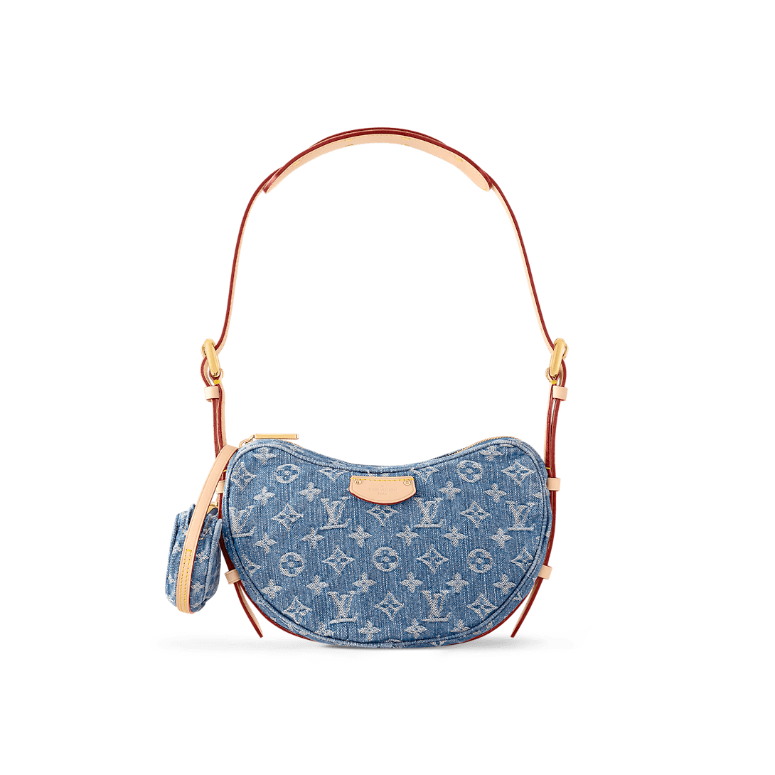 Made from certified-organic cotton, Monogram Denim canvas brings casual sophistication to the Croissant MM handbag. With its detachable strap that adjusts on both sides, the versatile Croissant can be worn cross-body or on the shoulder, with or without the mini croissant attatched. Each bag comes with a matching mini version of the Croissant that is four times smaller than the original.