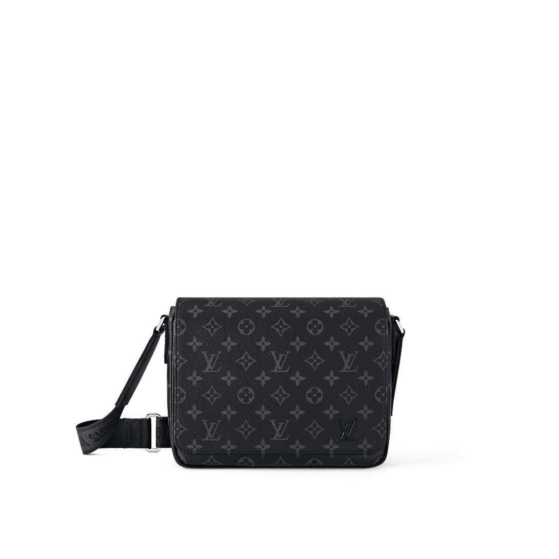 This District small messenger bag exudes handsome charm in Monogram Eclipse canvas. The Louis Vuitton logo and LV letters in the lower left corner highlight the brand elements. The rear zippered outer pocket is easy to access and the adjustable shoulder strap allows for comfortable carrying.