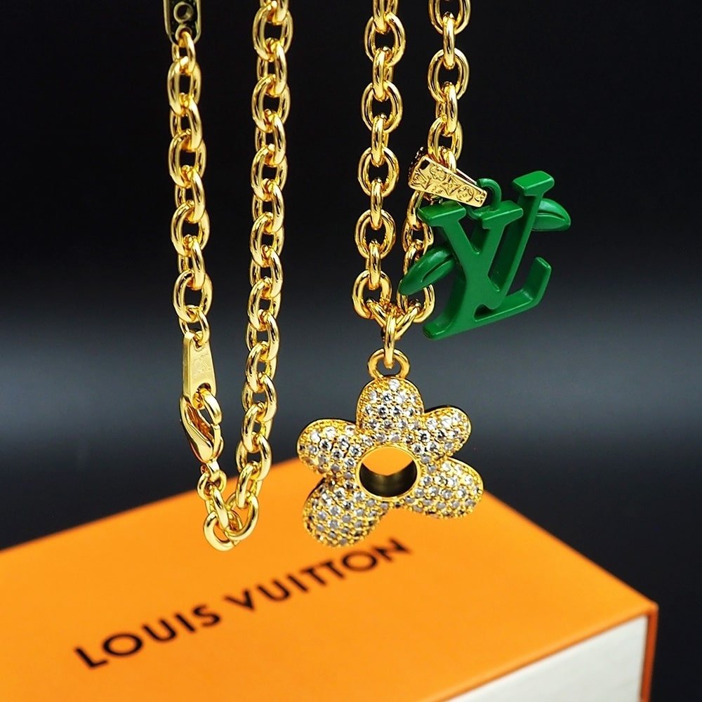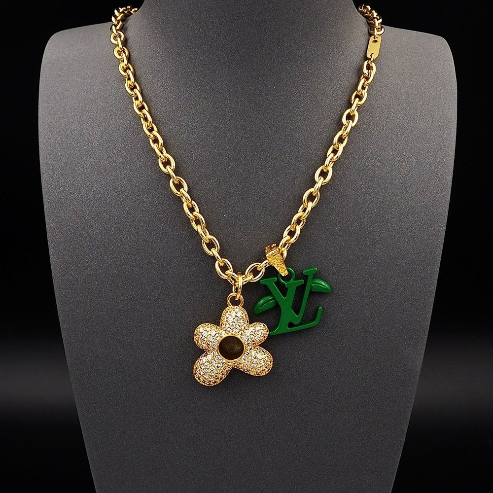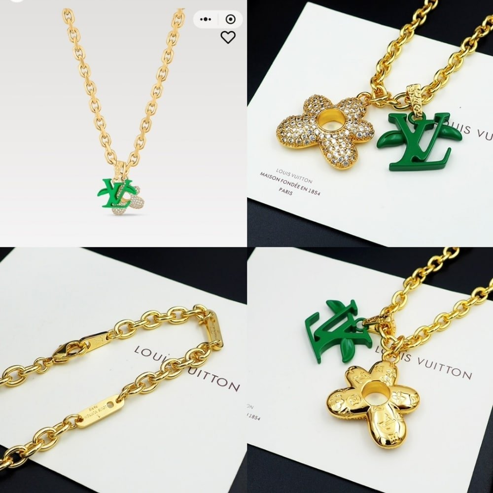 Louis Vuitton Lv Blooming Necklace Gold With Green M01867