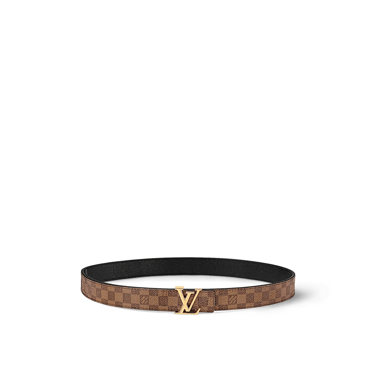 The Iconic 25MM belt is a timeless accessory in line with the trend for slim belts, for everyday wear. This trendy version can be worn at the waist to underline the silhouette or over pants for a casual look. This reversible belt can be worn on the Damier Ebene Canvas side or on the black leather side.