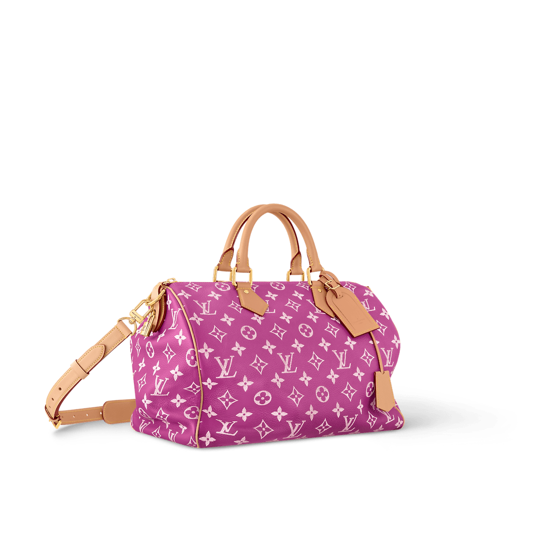 The Speedy P9 Bandoulière 40 bag is made from extra-soft calfskin in a colorway inspired by precious stones. This less structured version of the iconic Speedy is body-friendly and very comfortable to carry. As part of Pharrell Williams’ cowboy-influenced collection for Fall-Winter 2024, the handle mounts feature embossed horses.