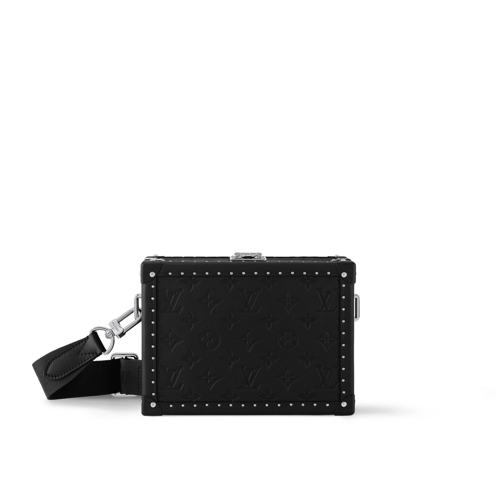The Clutch Box, a portable hardside case crafted in Monogram Shadow embossed leather, pays homage to Louis Vuitton’s trunk-making heritage. It features a detachable and adjustable fabric shoulder strap for easy shoulder or crossbody wear. Leather trim, metal rivets, and an S-lock closure create a modern look, while the interior features a gusseted compartment and a patch pocket.