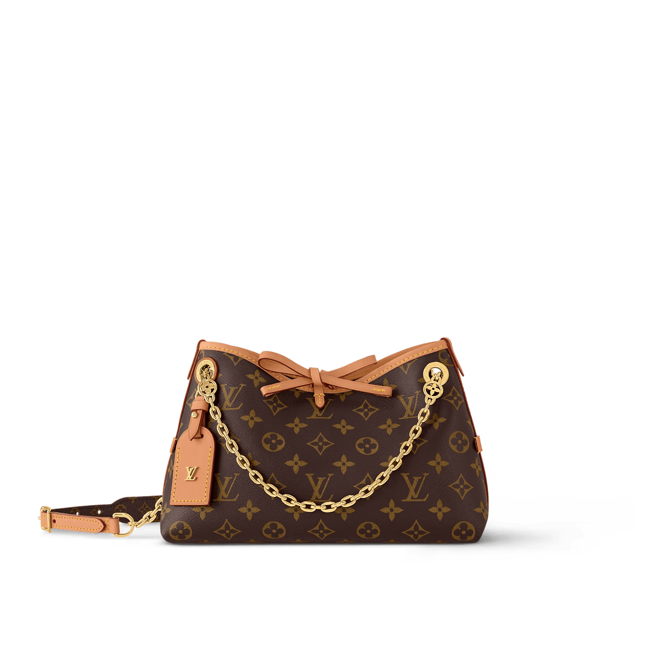 This CarryAll BB handbag is made of Monogram canvas and embellished with Monogram flowers for a dazzling chain, lighting up day and night occasions with a trendy look. The leather nameplate complements the lace-up closure, and the zippered inner pocket is convenient for daily access to credit cards.