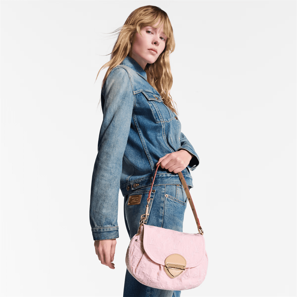 This seasonal update on the Sunset handbag showcases the return of the iconic 2005 Monogram Denim pattern. With a unique bleached finish, it is trimmed with smooth leather and elevated with light gold-toned hardware, including a statement tuck lock. This versatile piece can be worn cross-body, on the shoulder or carried by hand thanks to an extra strap. Use it to store day-to-night essentials.