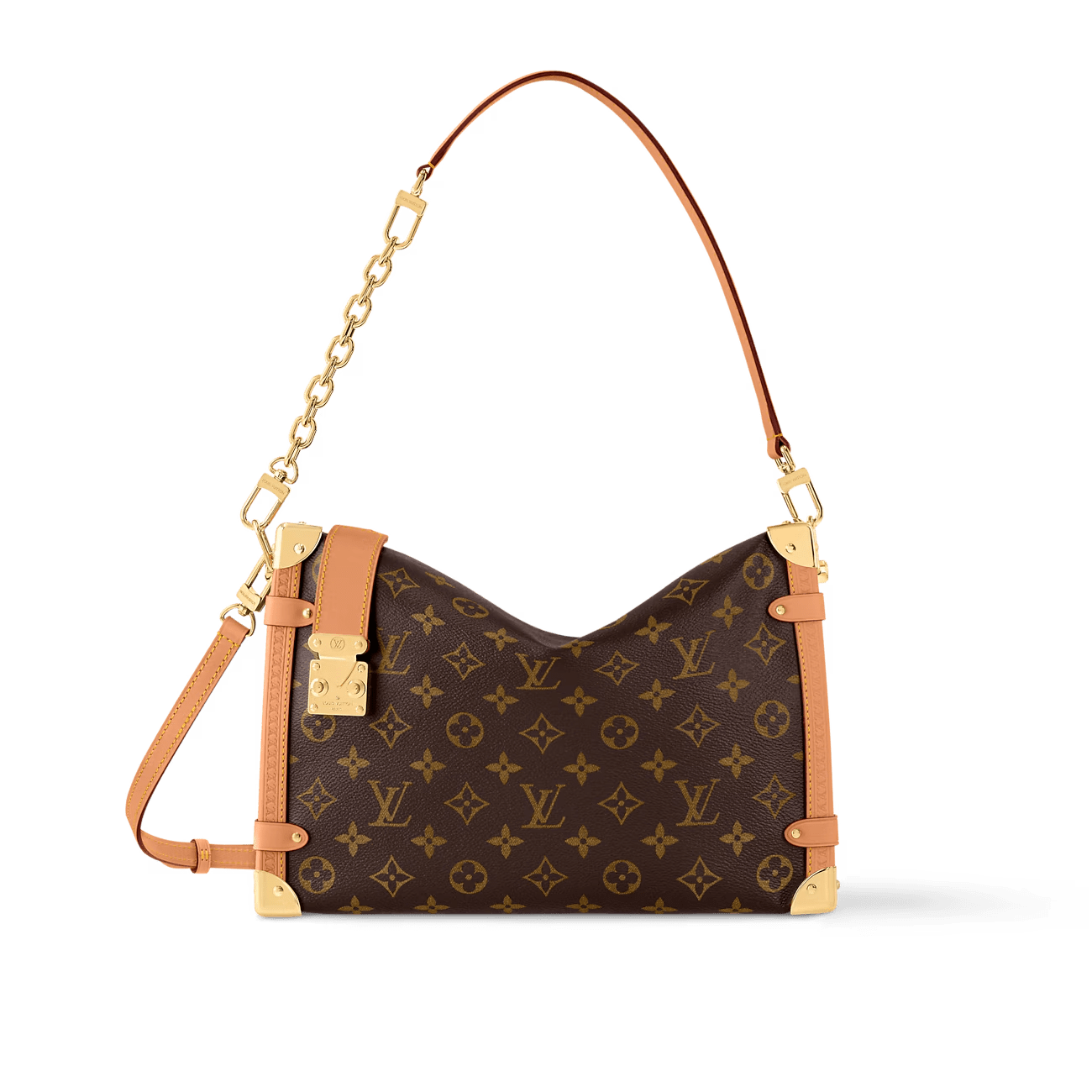 A celebration of the House’s iconic heritage, this Side Trunk GM is the perfect blend of bold and refined with its new chain extension. Sized to store everyday essentials and more… it is crafted from Monogram canvas with gold-toned hardware and contrasting leather trims. Note the signature details, from the S-lock closure to the trunk-inspired corners.