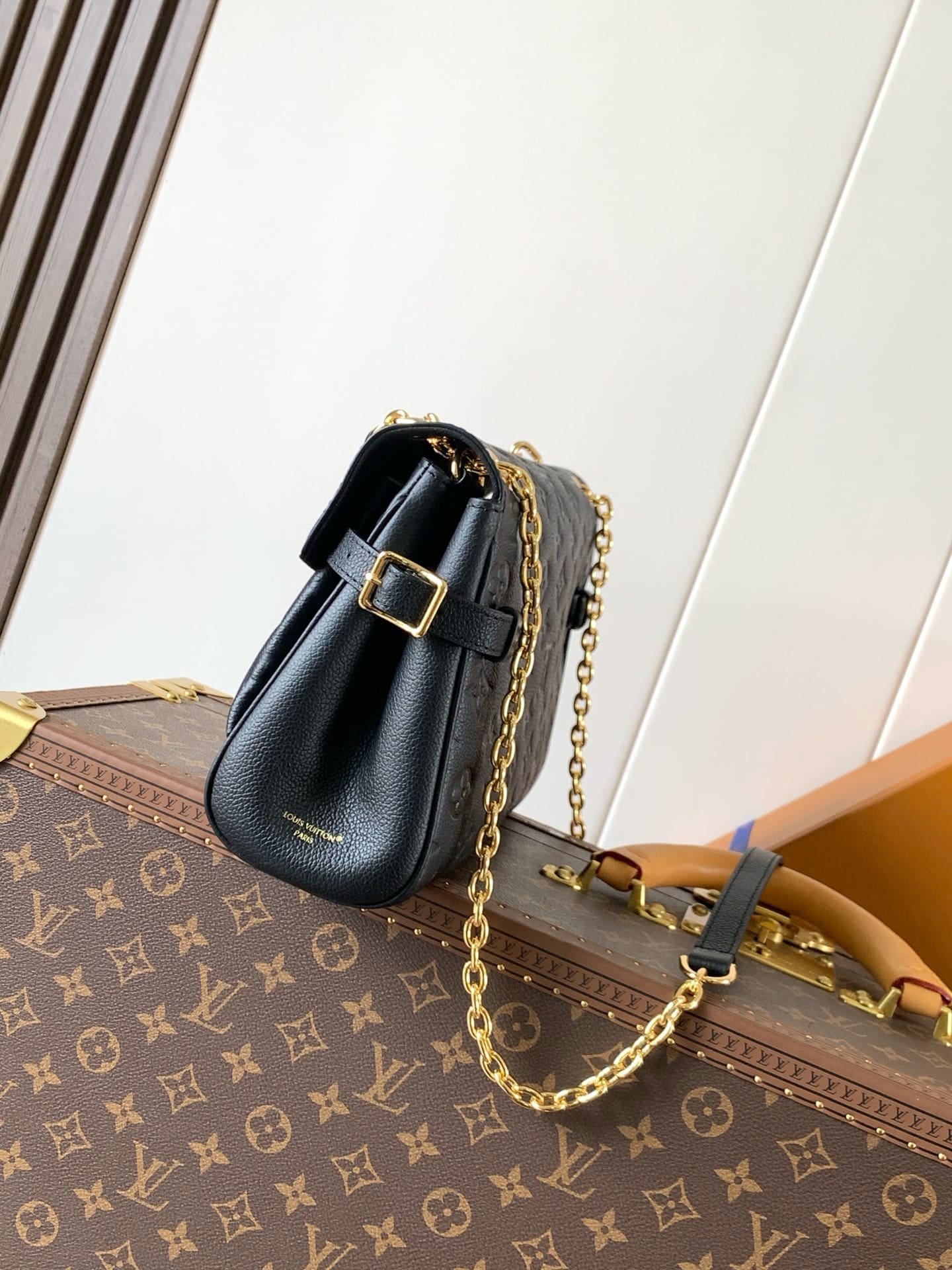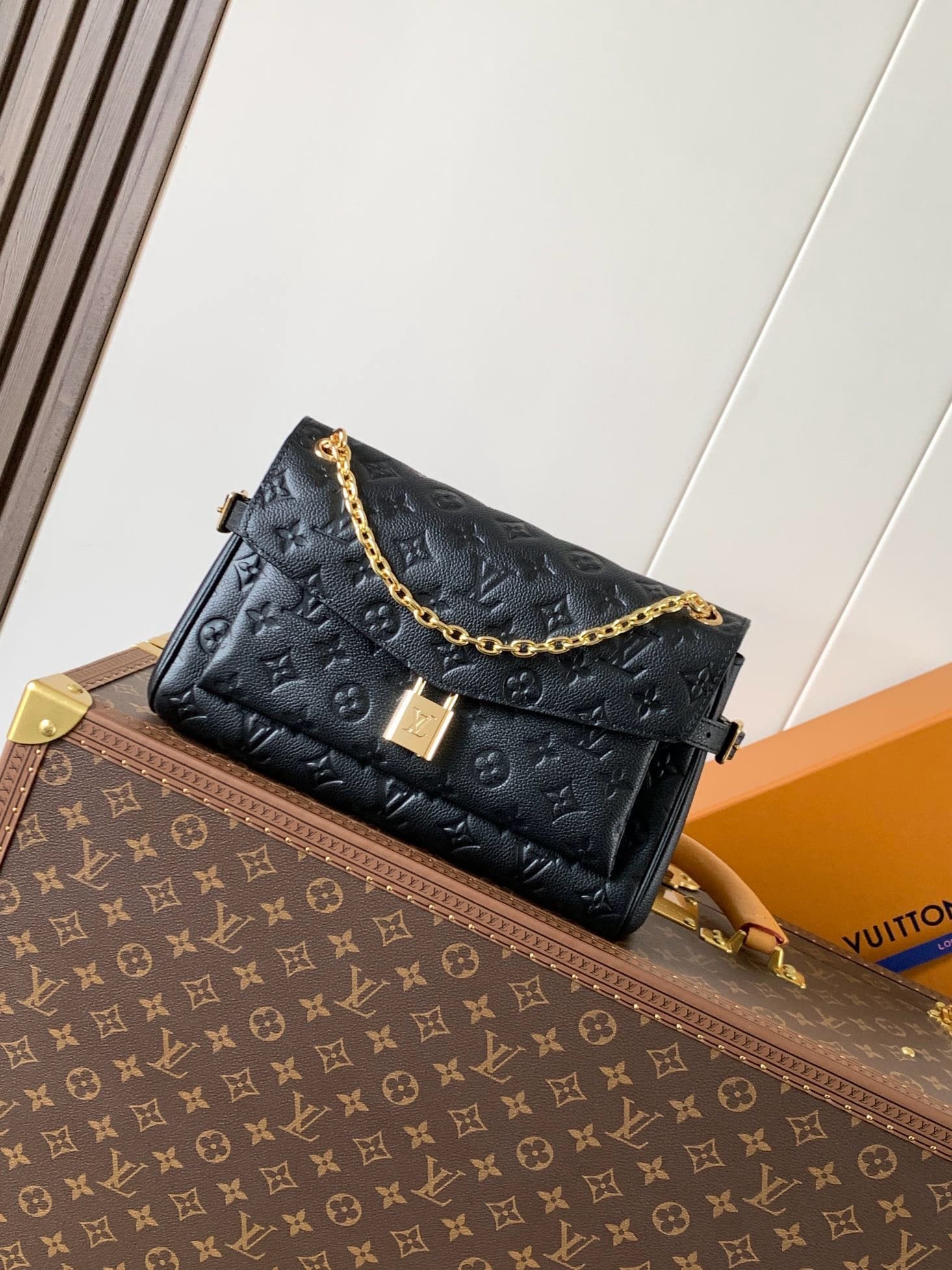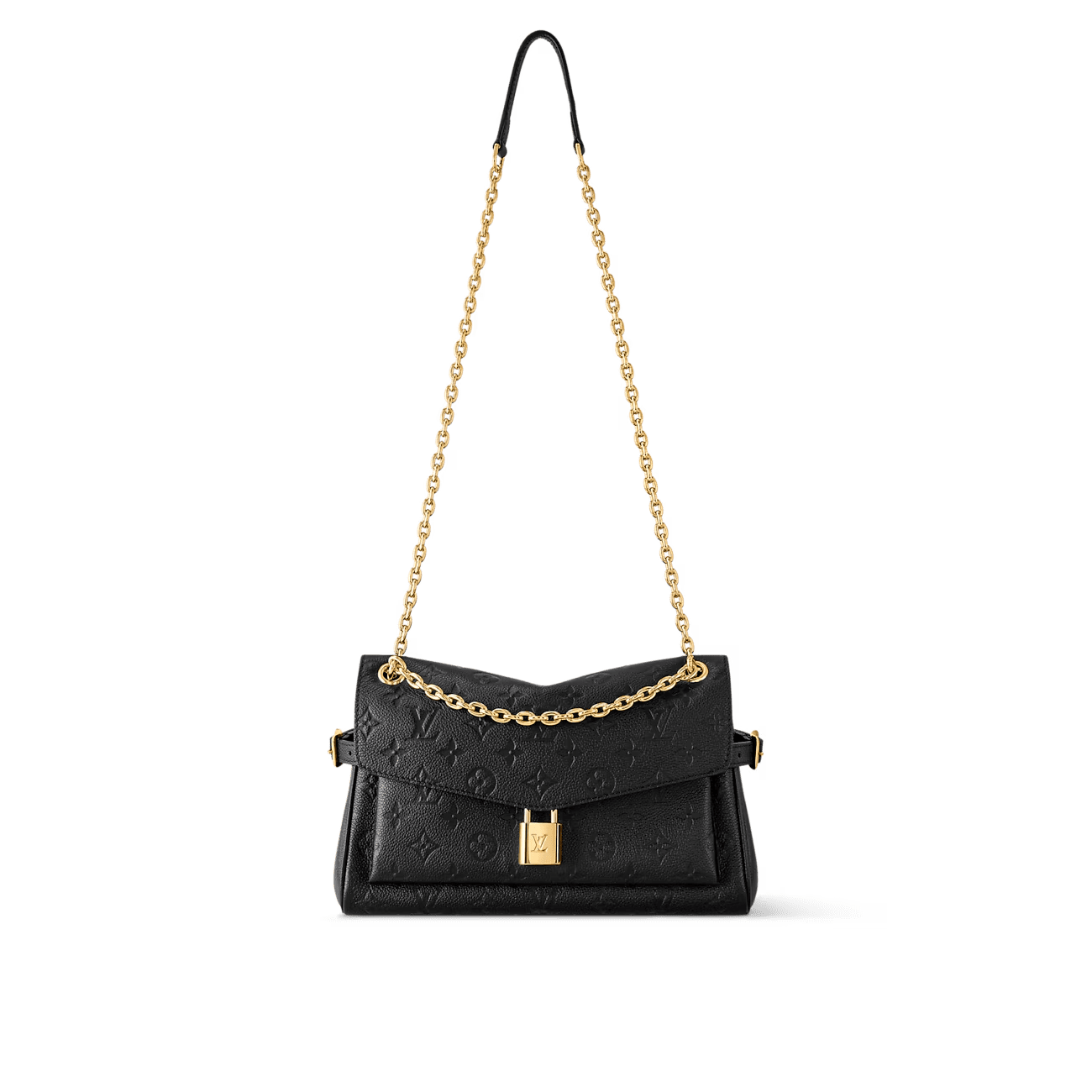 This chic day-to-evening style is the sister design to the Anytime Shopper. It is crafted from Monogram Empreinte leather with a sliding gold-toned chain that complements the signature LV padlock. With multiple carry options, it has an expandable structure thanks to the side buckles, offering plenty of space for everyday essentials.