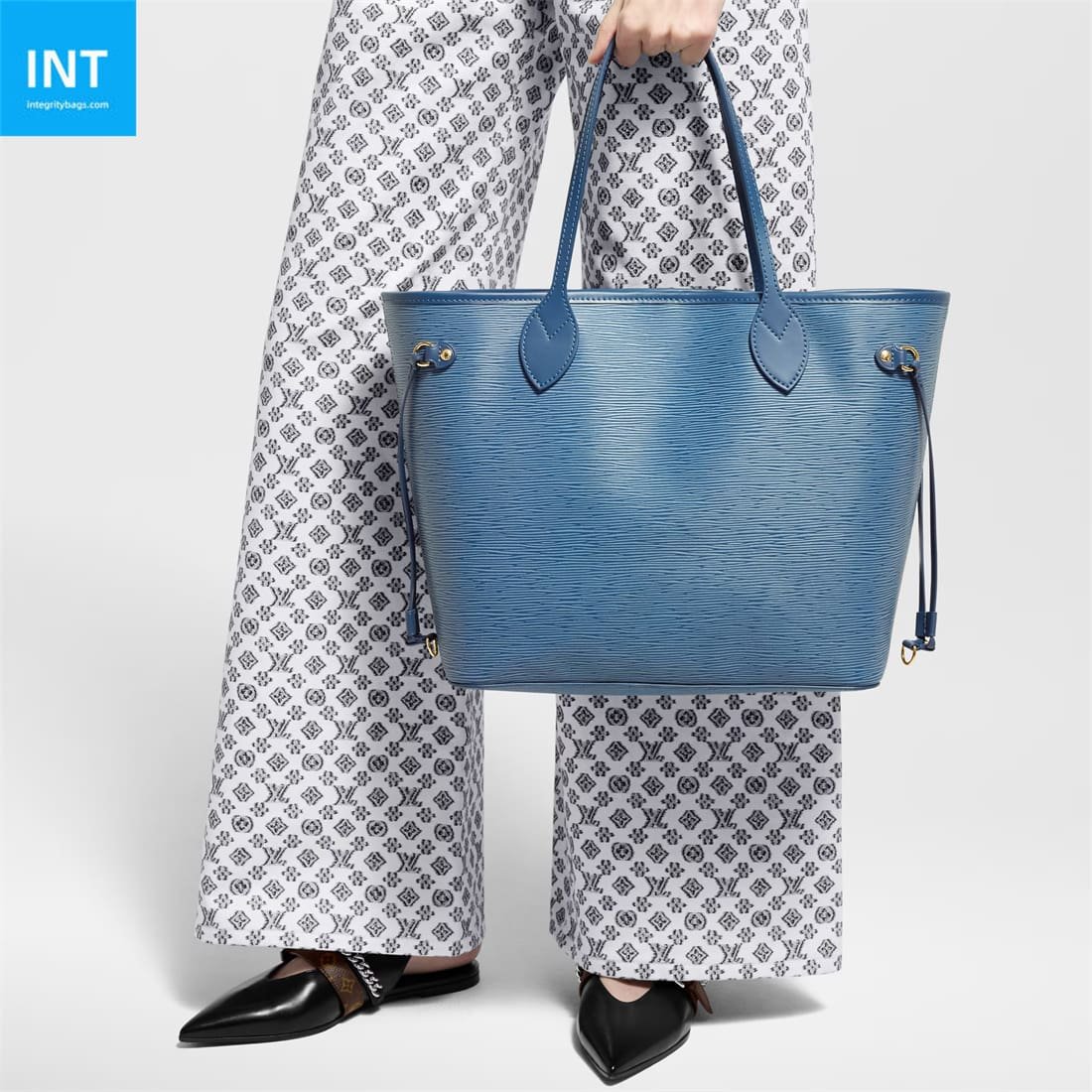 Designed with a cool denim-blue finish, the Neverfull MM handbag strikes the balance of directional and timeless. It is crafted from signature Epi leather adorned with gold-toned hardware.The interior offers a removable monogram zipped pouch, and is lined in Monogram denim. Use the side laces to cinch the silhouette, wearing it over the shoulder or carried by hand.