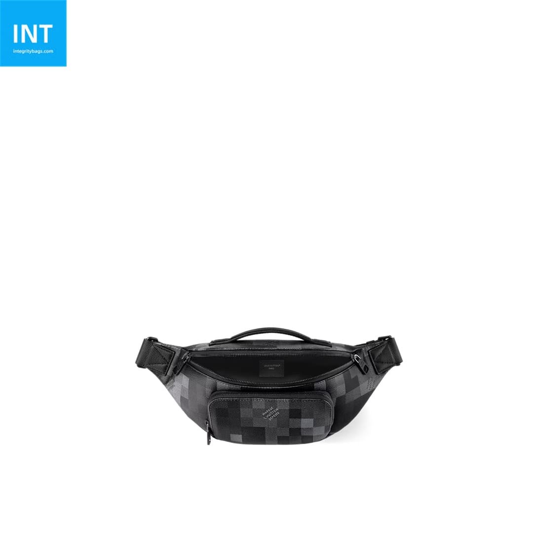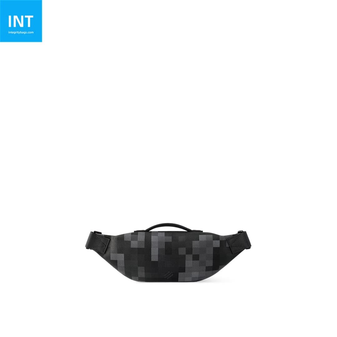 Crafted from Damoflage Black canvas, the Rush Bumbag makes a bold, contemporary statement, perfect for those seeking an effortlessly cool vibe. The iconic Damier pattern is subtly pixelated, creating a unique camouflage effect in shades of black. The adjustable strap allows the bumbag to be worn around the waist, on the shoulder, or cross-body. Appearance may vary slightly from photos, depending on the placement of the pattern.
