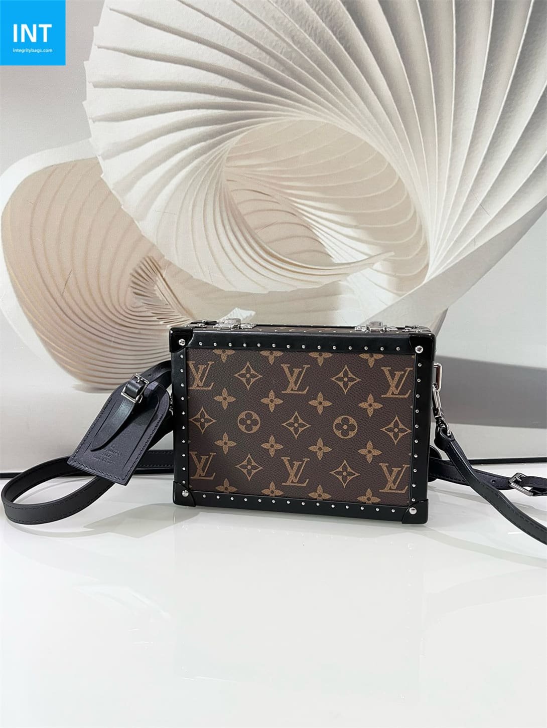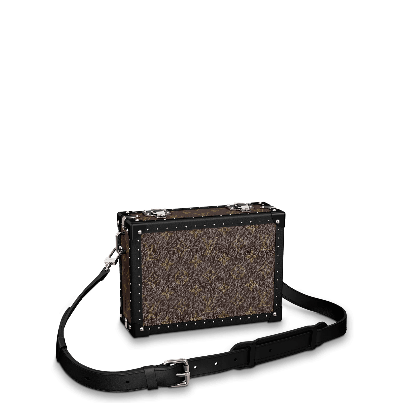 Unveiled at the Spring/Summer 2020 runway, the Clutch Box is a nod to Louis Vuitton’s trunk-making heritage. Crafted from Monogram canvas with leather trim and studs, its compact design includes a zippered pocket and a large gusseted compartment. The adjustable strap allows for shoulder or crossbody wear.