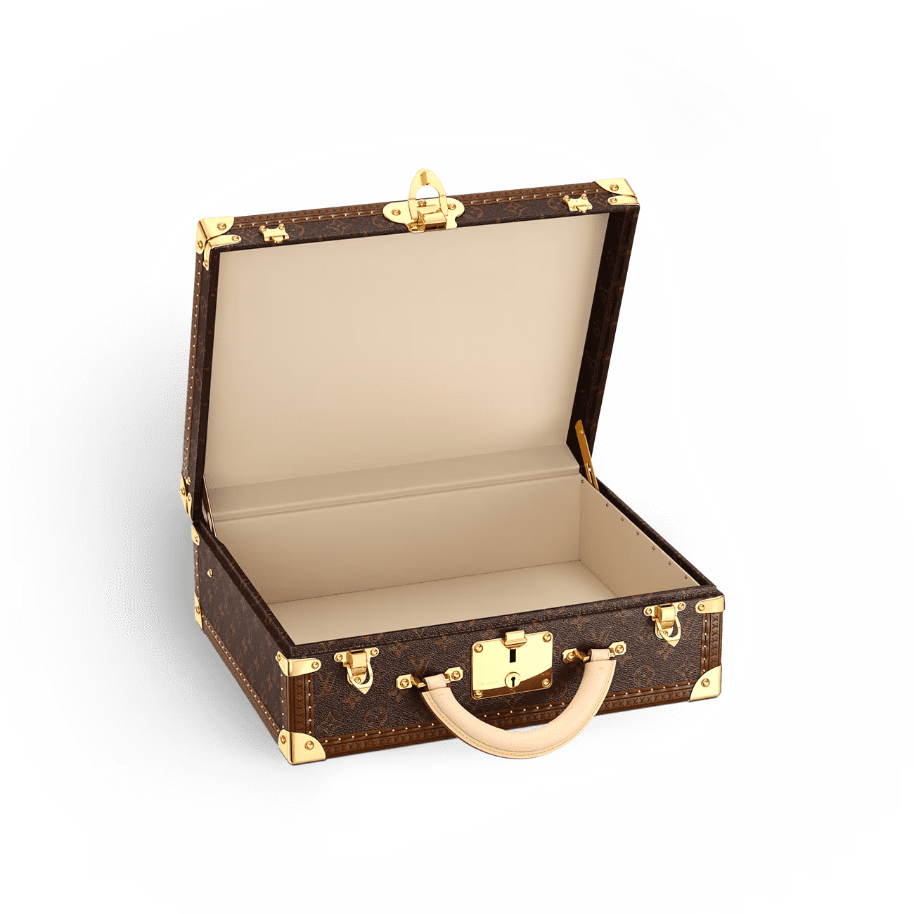 - Louis Vuitton “S” lock with key, reinforced with two complementary trunk latches