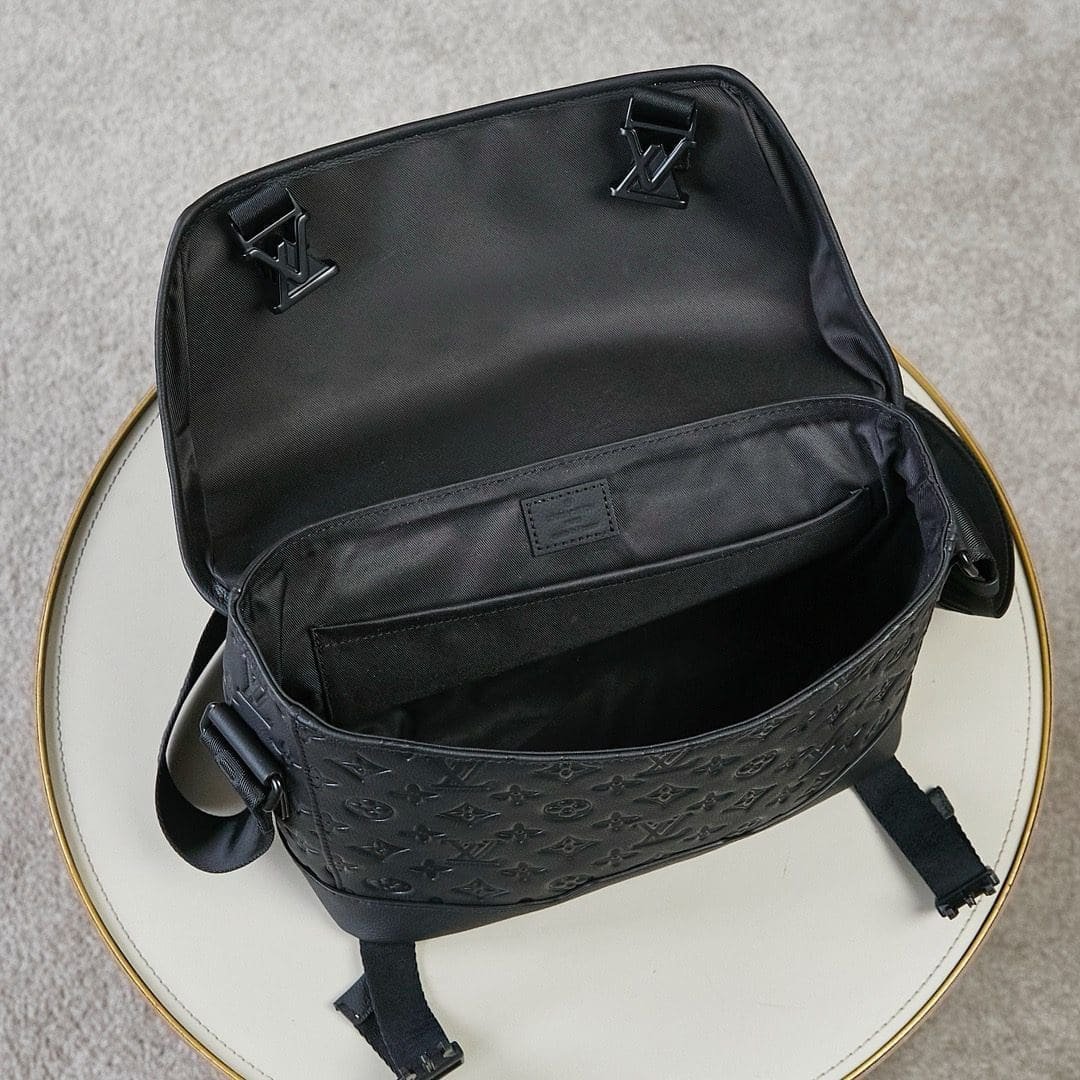 Inspired by the vintage school bag, the Messenger Voyager PM bag is made from Monogram Shadow calfskin. The familiar and comfortable-to-carry shape is enriched with two new signature LV buckles, and a convenient adjustable shoulder strap. A great work bag, its roomy interior can fit a tablet, charger, notebooks, and other daily belongings.