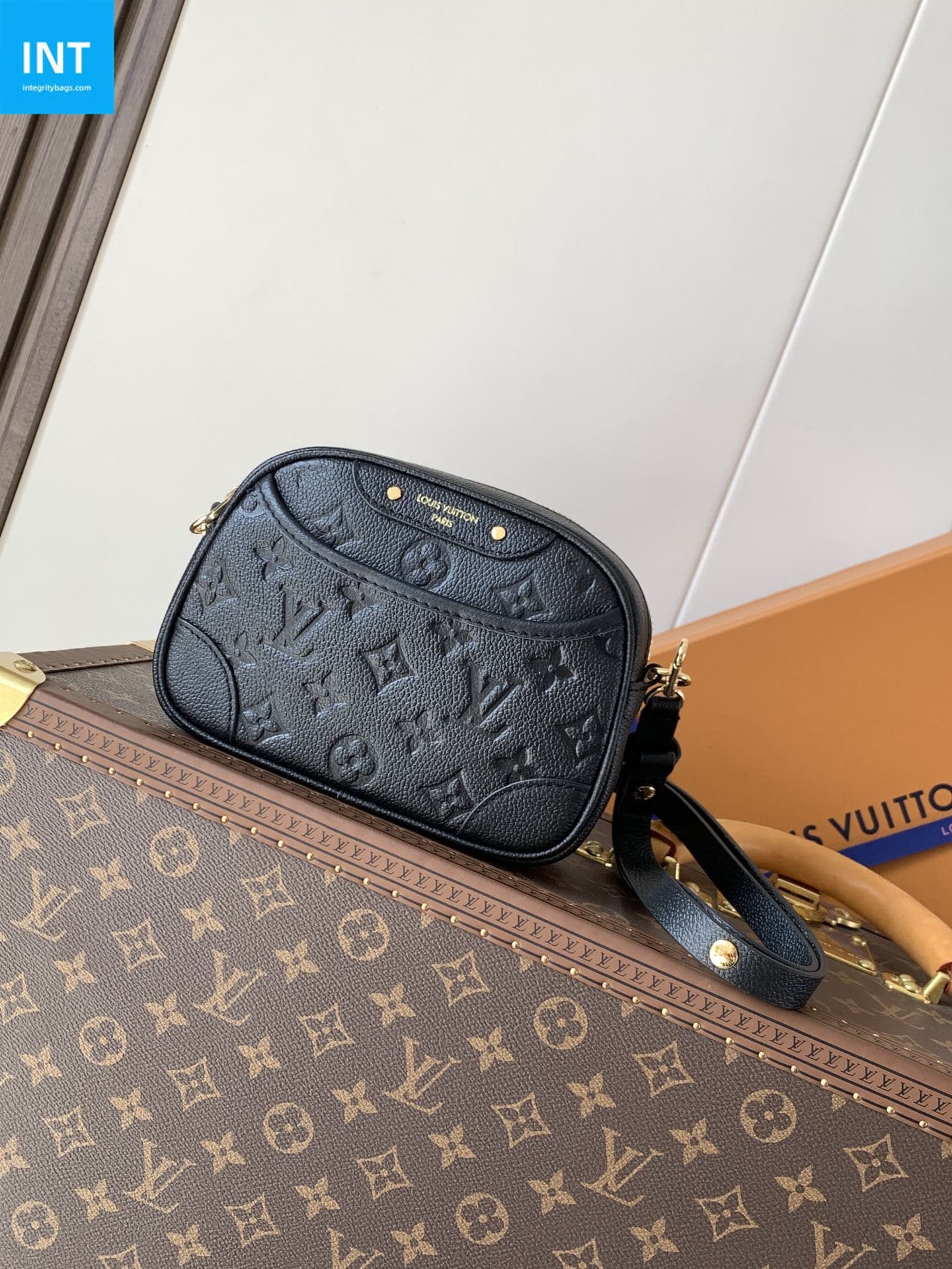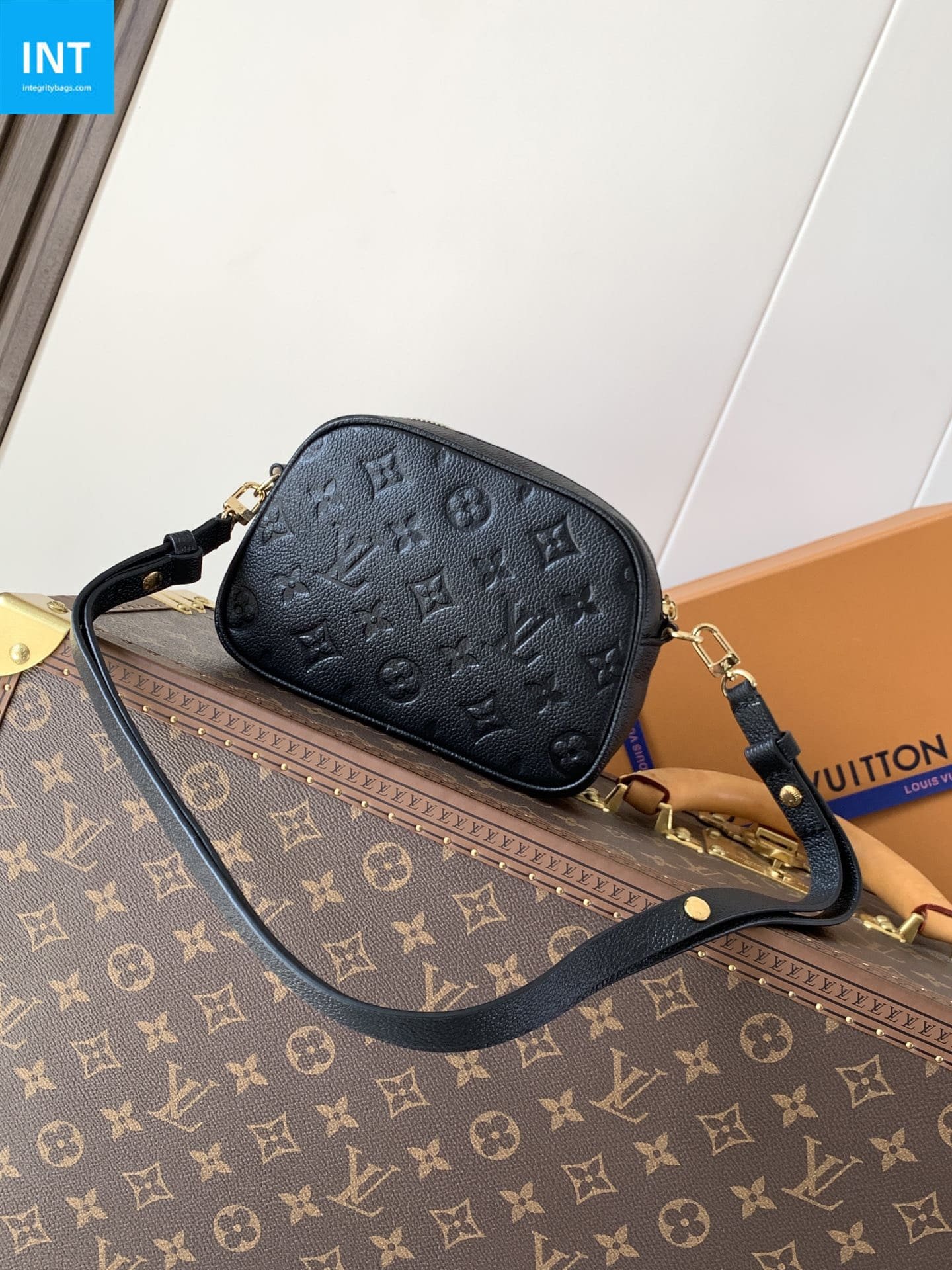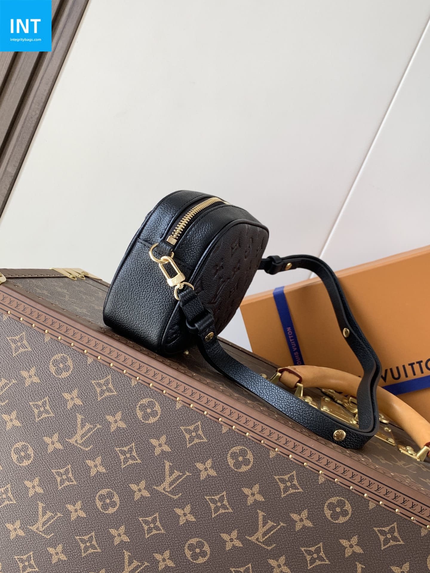 The Monogram Empreinte collection offers this Tiny Camera Bag in a timeless colorway. Crafted from cowhide leather, it is designed with gold-toned hardware and offers an adjustable strap for multiple ways to wear. This sleek handbag will complement both day and night looks, and fits everyday essentials. The front flat pocket is ideal for keeping a credit or travel card within easy reach.