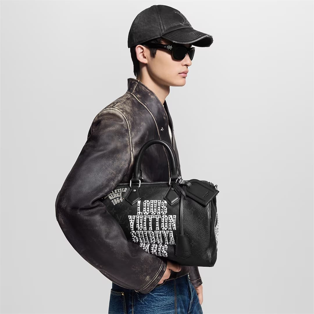 Designed by Japanese creator Nigo in collaboration with Pharrell Williams, this Speedy P9 Bandoulière 30 pays homage to Shibuya, one of Tokyo’s most vibrant districts and home to a Louis Vuitton store. Adorned with 1,200 meticulously hand-applied studs, this Speedy showcases the House’s extraordinary craftsmanship. It’s lined with quilted red lambskin.