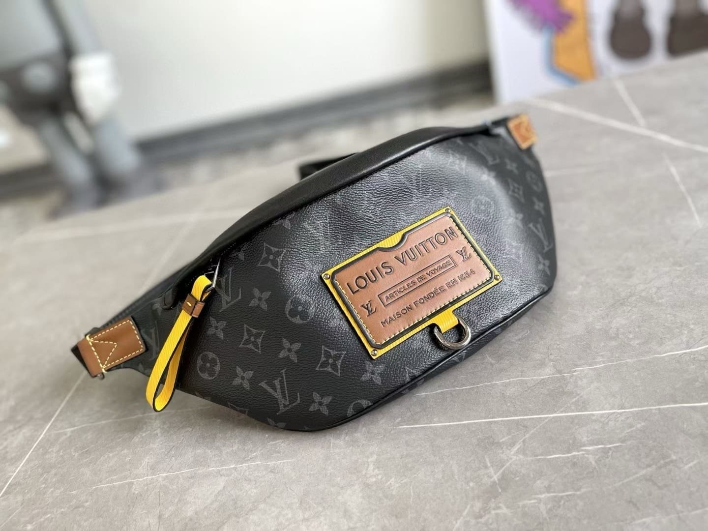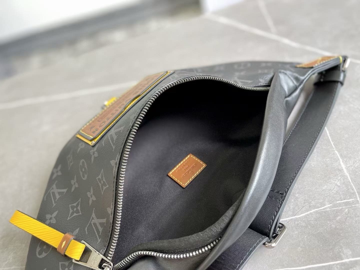 The Discovery Bumbag is revisited in Monogram Eclipse canvas with an embossed leather patch for the Gaston Labels Collection. This special edition was inspired by the vintage luggage labels collected by Louis Vuitton’s grandson, Gaston-Louis Vuitton. This model features an adjustable belt and multiple zipped pockets to securely hold valuables.