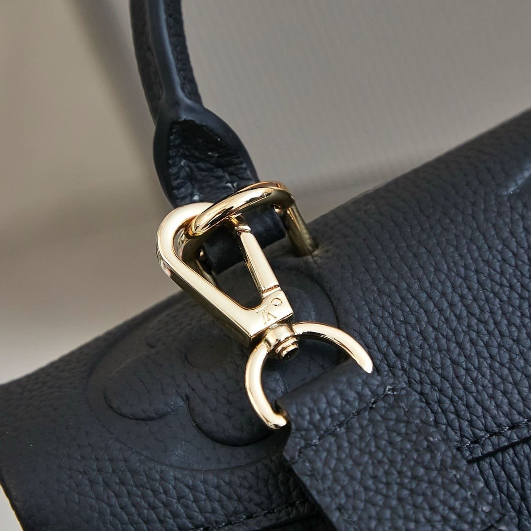 With its single, articulated top handle and embossed Monogram Empreinte leather, this Madeleine MM handbag is the House’s latest, day-to-business, must-have accessory. The leather key bell and gold-color S-lock evoke the House’s travel heritage while the removable and adjustable strap provides carry options.