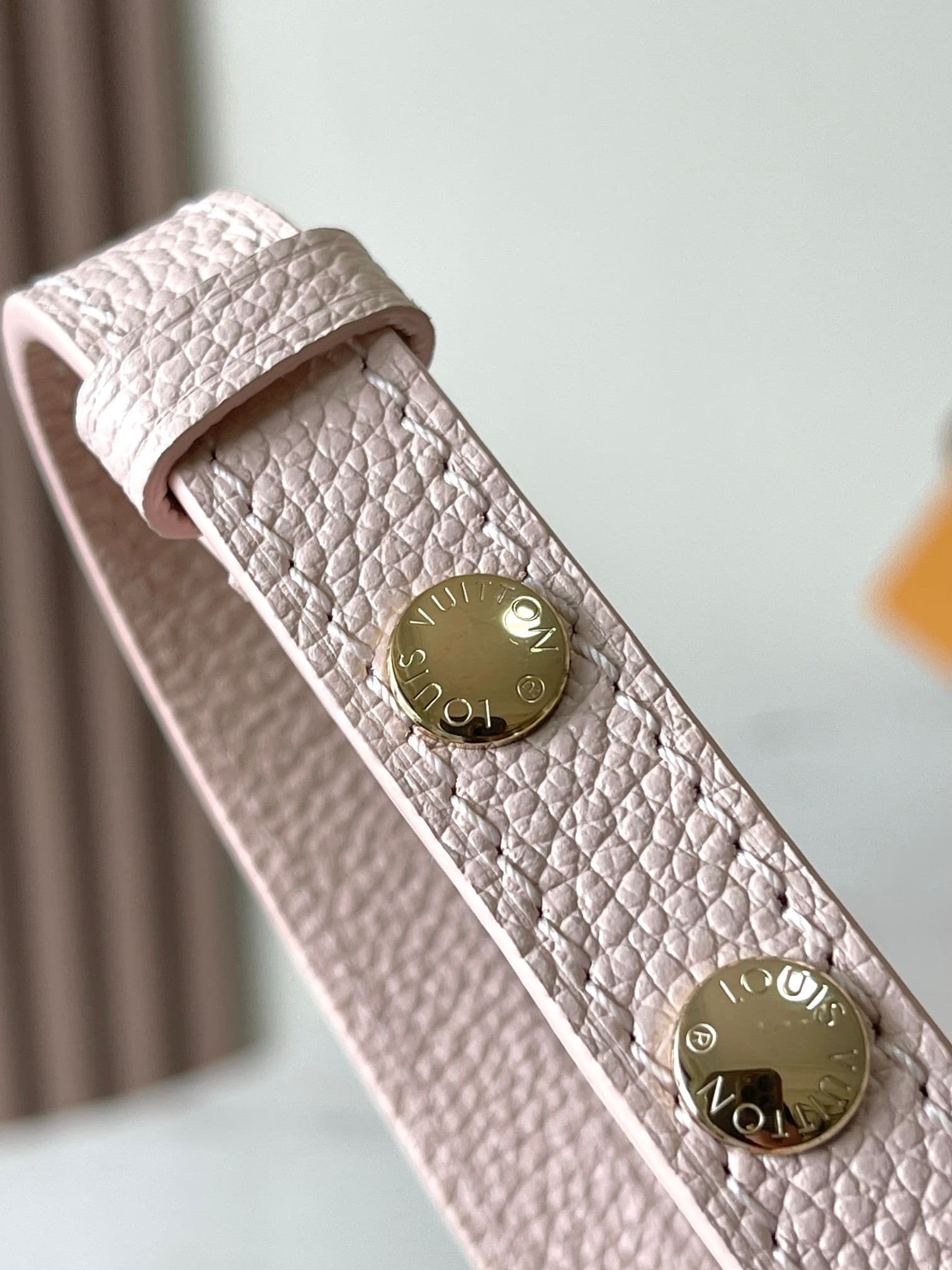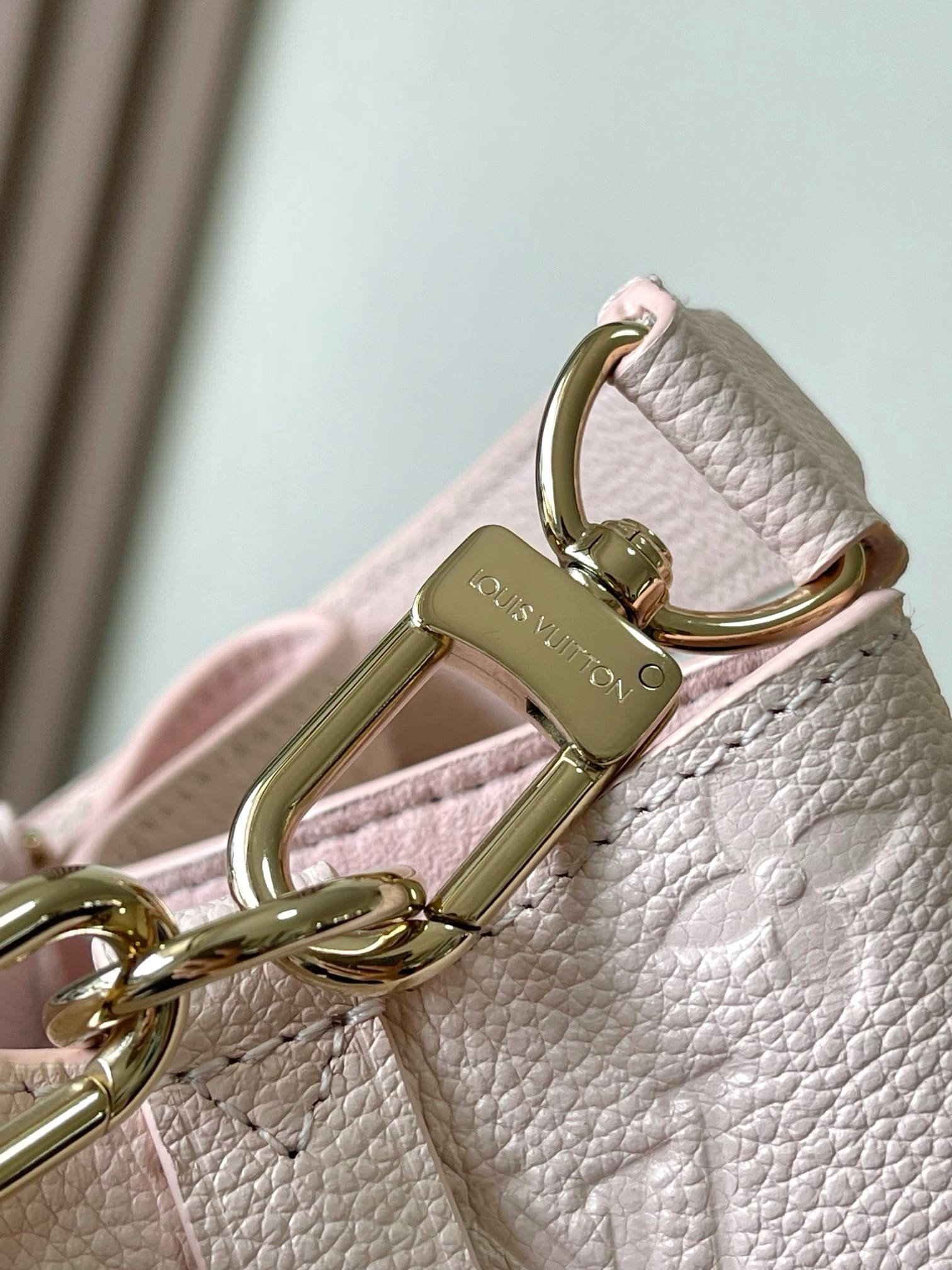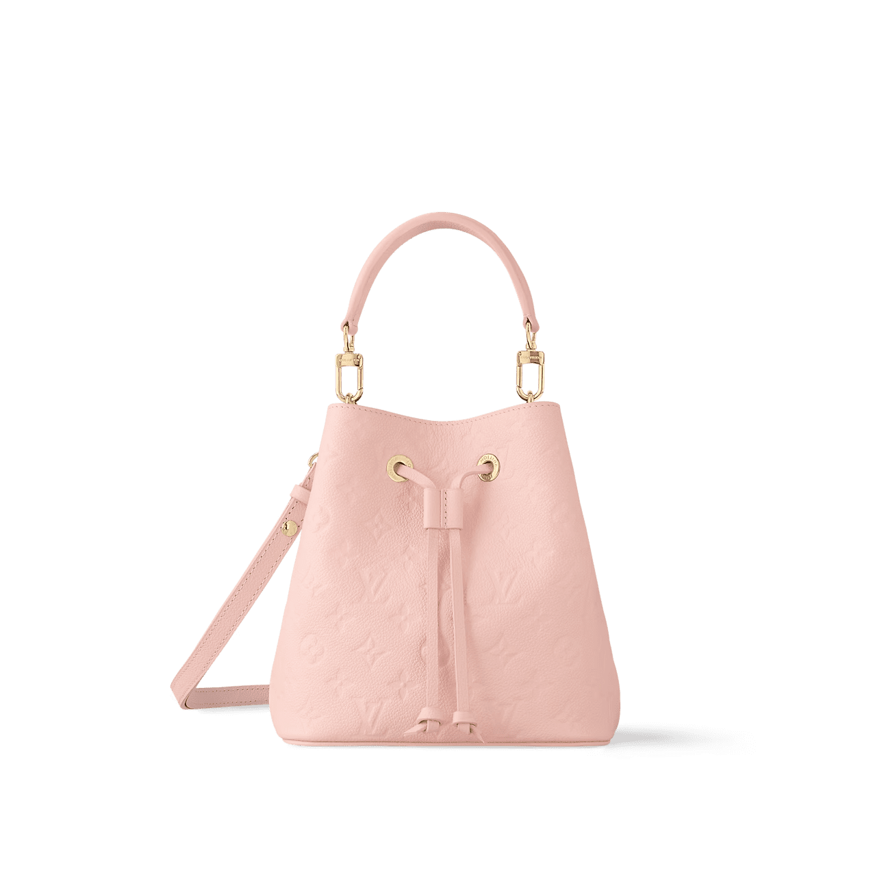 Pastel-toned Monogram Empreinte cowhide leather brings a soft and supple feel to this compact NéoNoé BB bucket bag. The understated Monogram embossing of the leather and pale-gold-color hardware bring quiet elegance. A detachable top handle enables hand carry while a removable and adjustable strap gives shoulder-carry options.