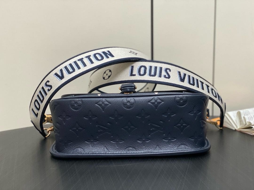 Part of the Nautical Collection, this Diane PM satchel bag is made from two-tone Monogram Empreinte leather and features a distinctive gold-color buckle. It has both a removable jacquard cross-body strap with “Louis Vuitton” woven into it, and a second shorter detachable strap for hand and short-shoulder carry.