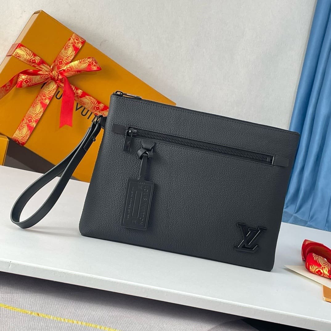 The new LV Aerogram clutch exudes a trendy style with its restrained design. The soft and delicate cowhide leather looks like old-fashioned aviation letterheads, the metal LV letters and customizable labels reveal classic heritage, and the detachable leather wristband and other elements upgrade functionality.
