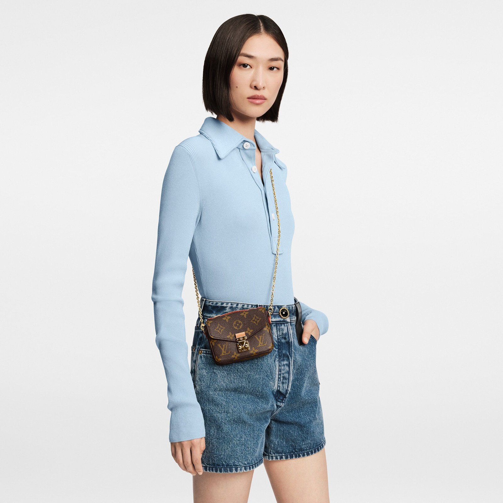 This Micro Métis chain bag is made of Monogram canvas and condenses the classic structure of the Pochette Métis handbag in a pocket-sized size. The handles are in signature leather and the S-lock comes from Louis Vuitton’s traditional trunks. The detachable chain provides a trendy carrying option, suitable for day and night occasions.