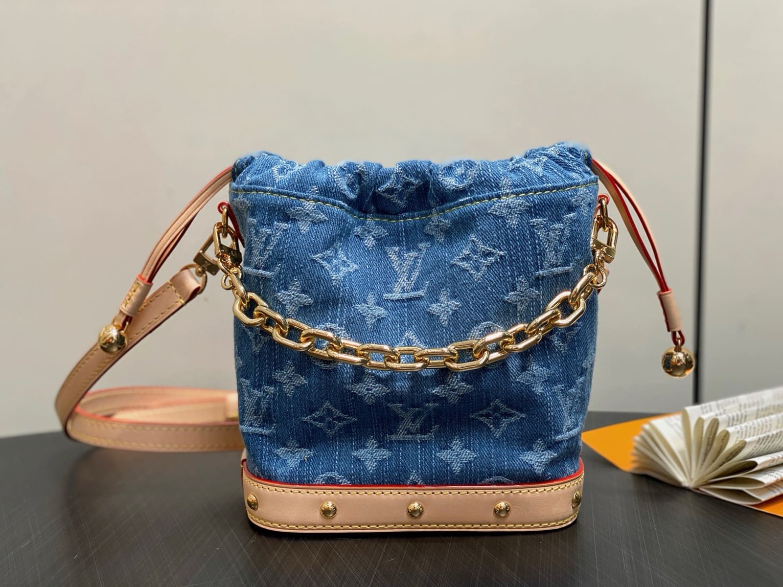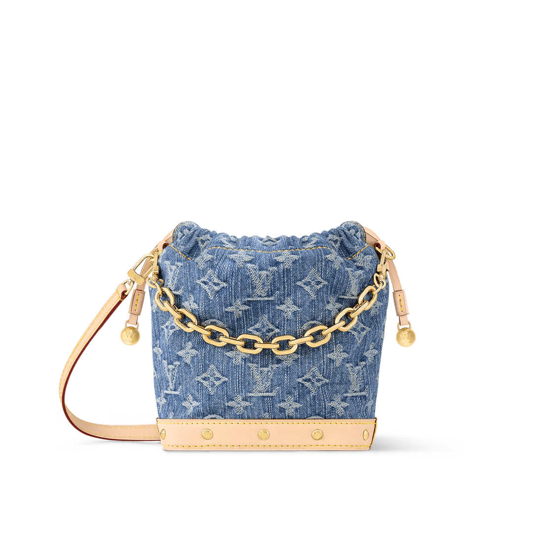 The Nano Noé backpack is updated for the season in this contemporary Denim Blue palette, which perfectly complements the contrasting leather trims. It is crafted from organic cotton patterned with the signature Monogram and features a gold-toned chain. The drawstring closure is adorned with an LV-engraved charm, offering a playful finish that also celebrates the House’s heritage.