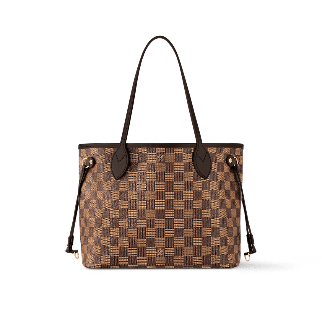 The Neverfull PM tote pairs timeless design with heritage details. Crafted from Damier Ebene canvas with natural cowhide trim, it is capacious yet not bulky, with side laces that cinch for a sleek allure or loosen for a casual look. Slim, comfortable handles slip easily over the shoulder or arm. Lined in colorful textile, it features a removable pouch which can be used as a clutch or an extra pocket.