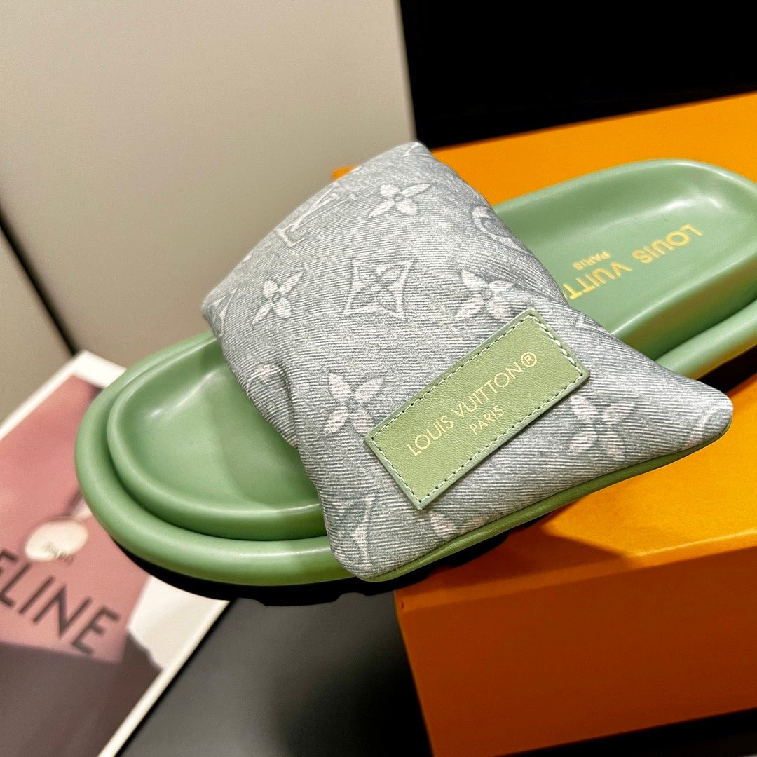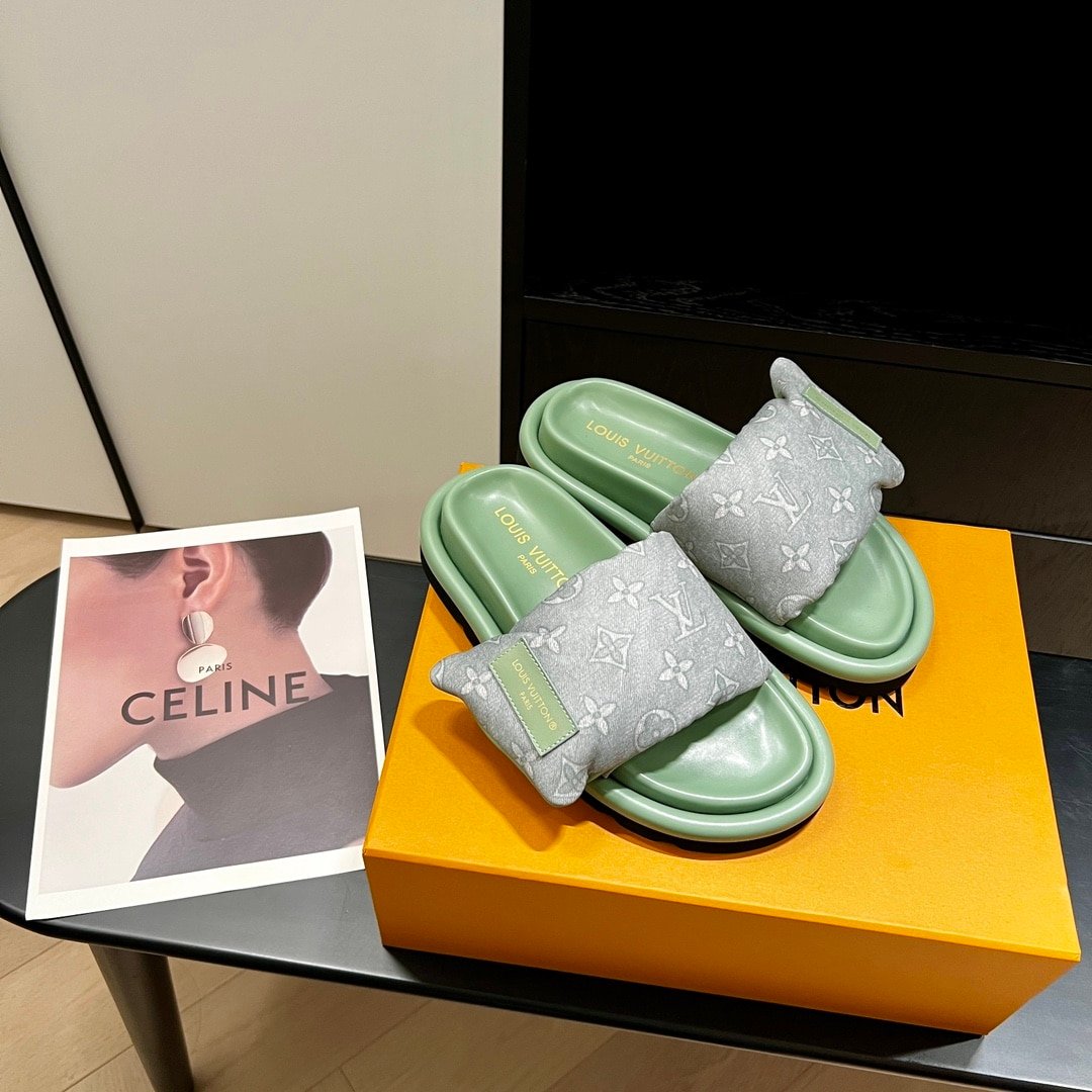 Louis Vuitton Pool Pillow Flat Comfort Mule Sandals Kaki Green 1Acj06