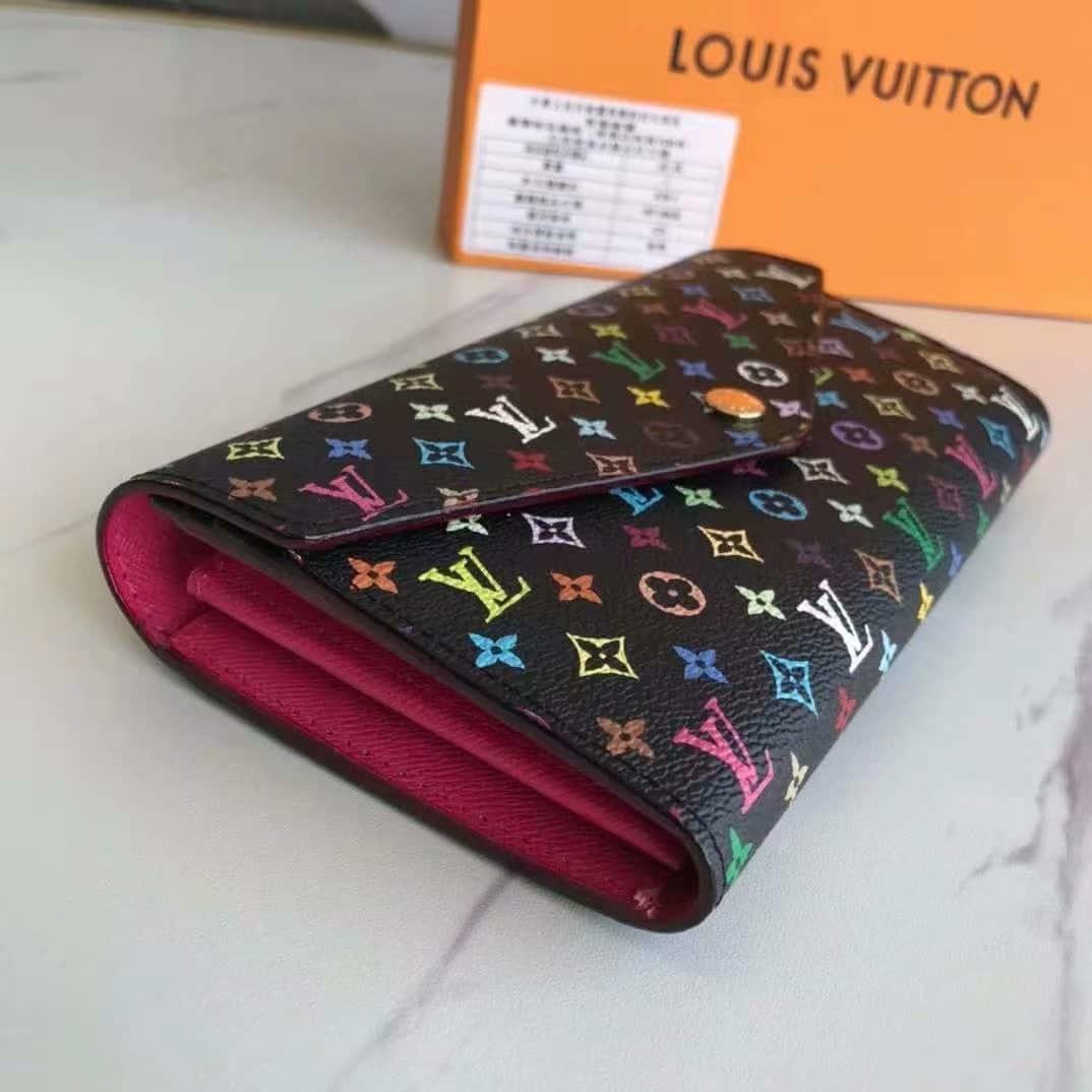 Louis Vuitton Sarah Wallet Monogram Multicolor Black 19Cm
