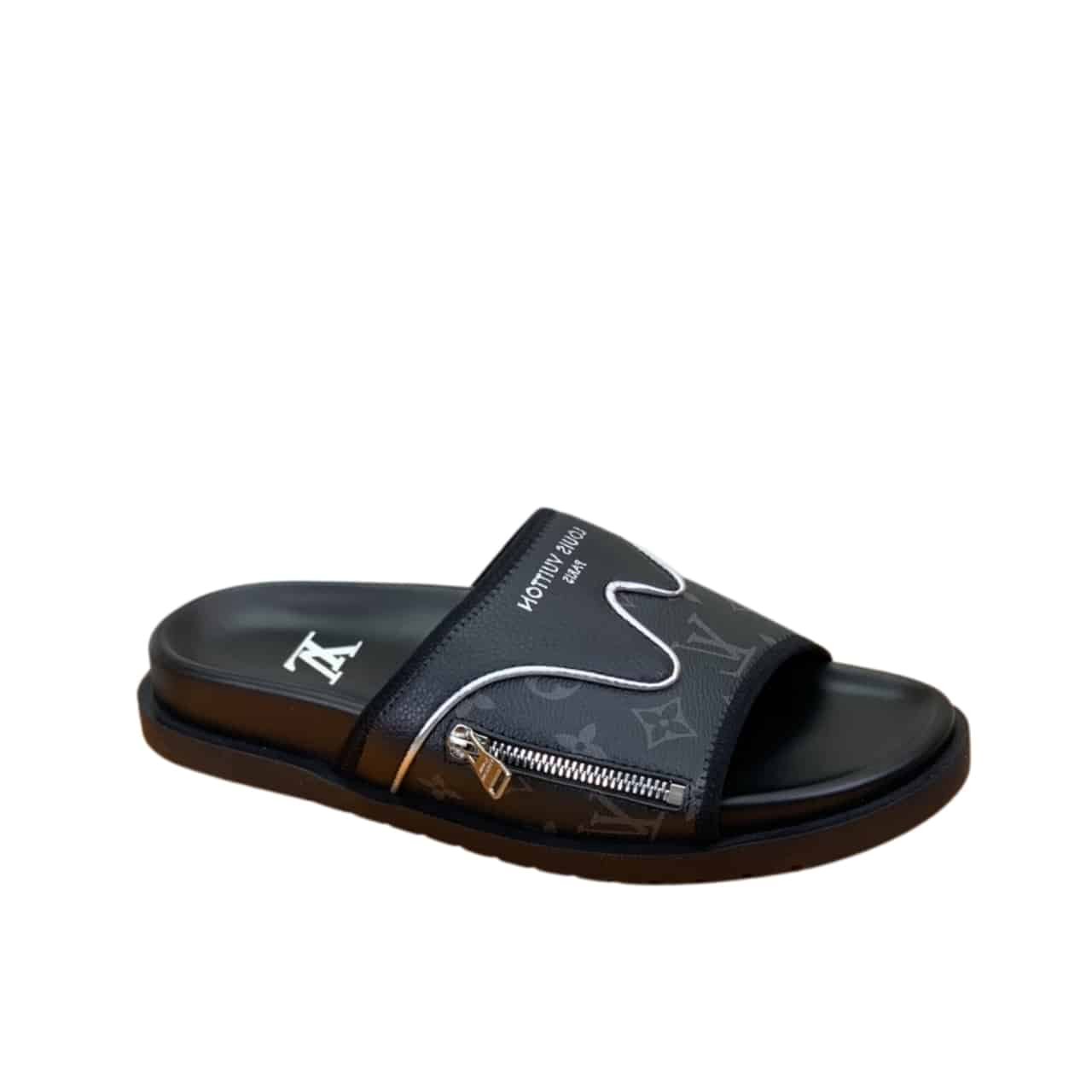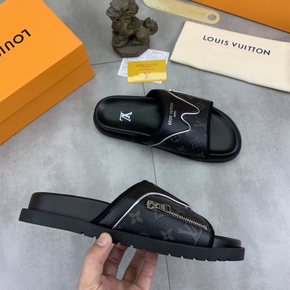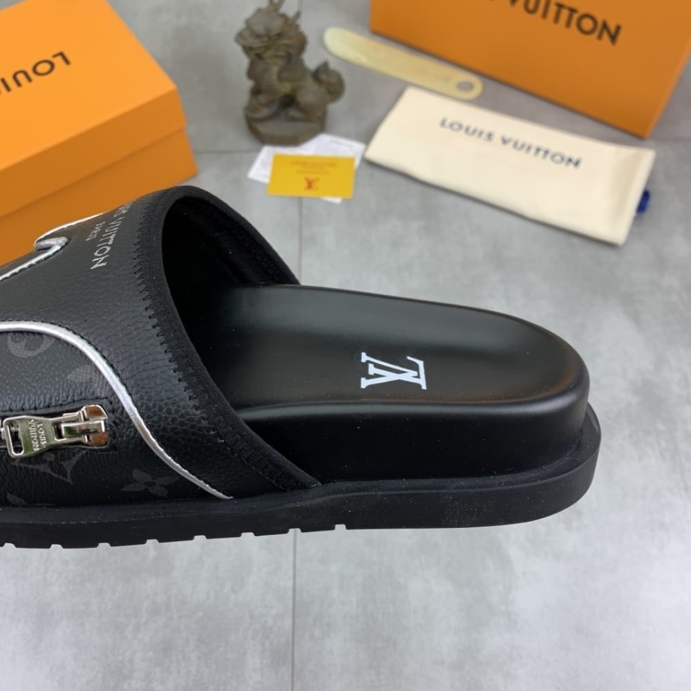 Louis Vuitton Velcro Slippers Lock Edge Black
