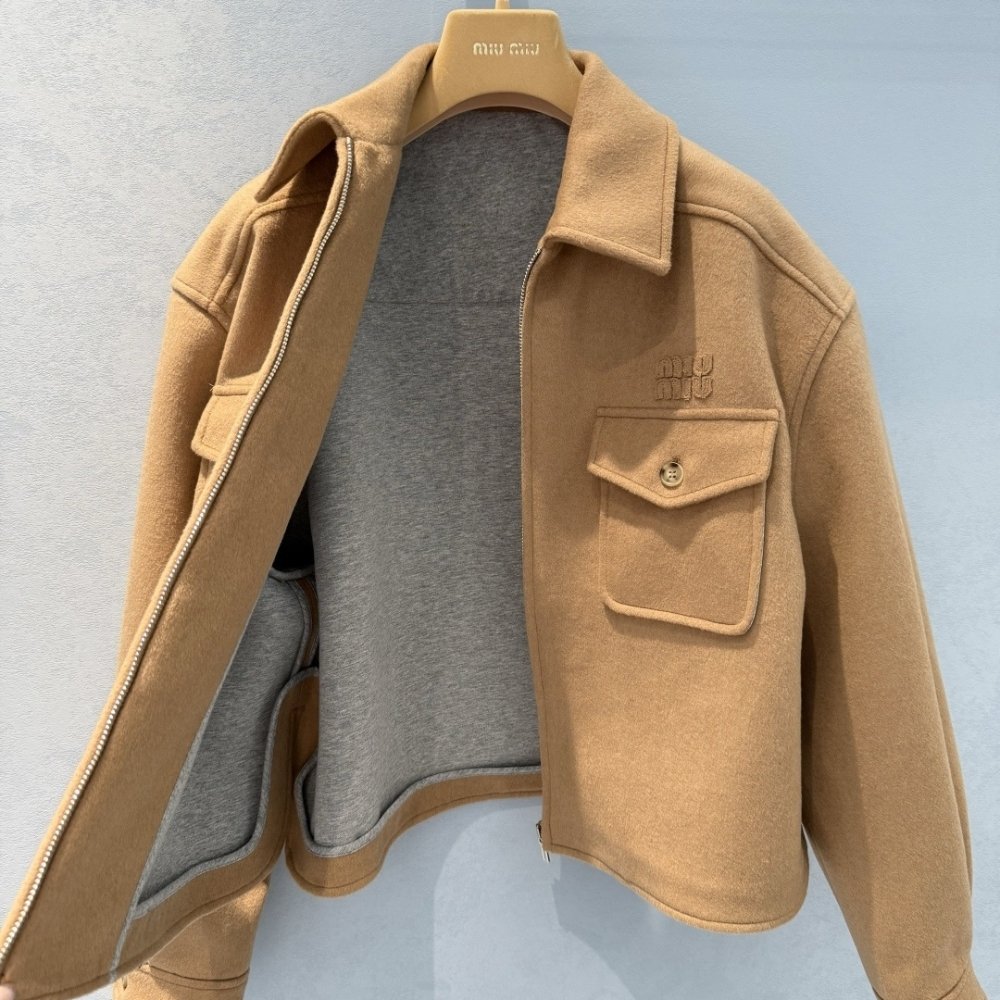 Miu Miu Bonded Camel Hair Blouson Jacket Camel Brown Ml1331 175T F0040 S Ooo