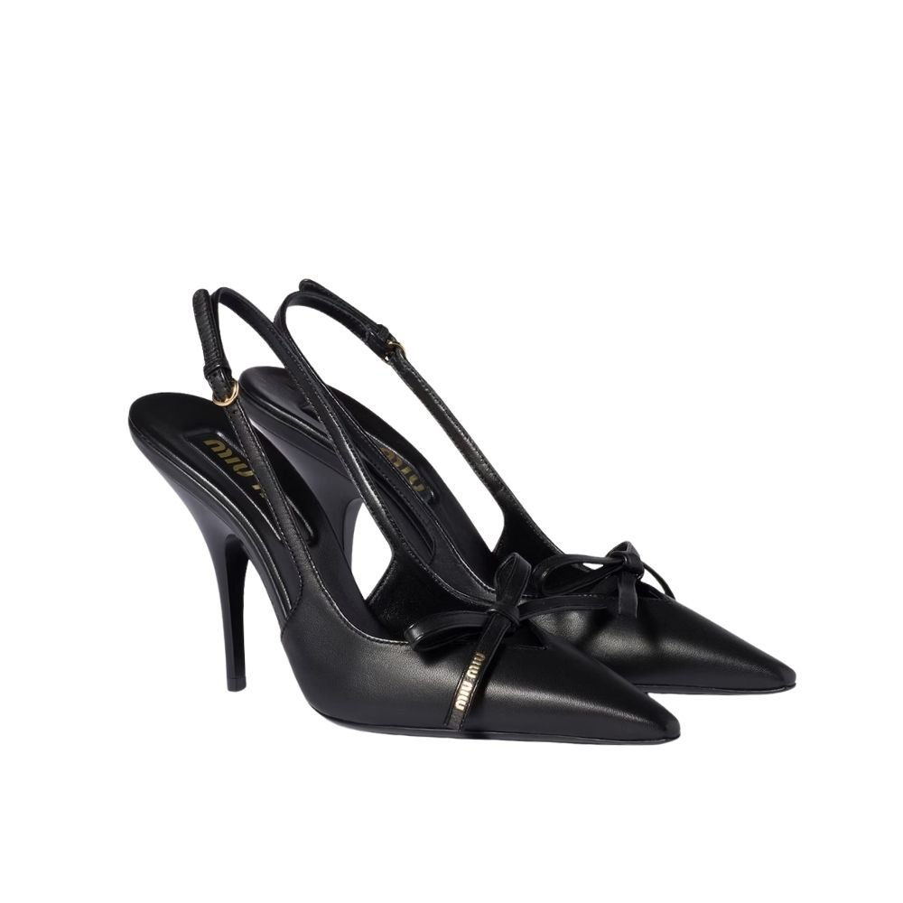 Miu Miu Leather Slingback Pumps With Bow Black 5I474E 79N F0002 F 105