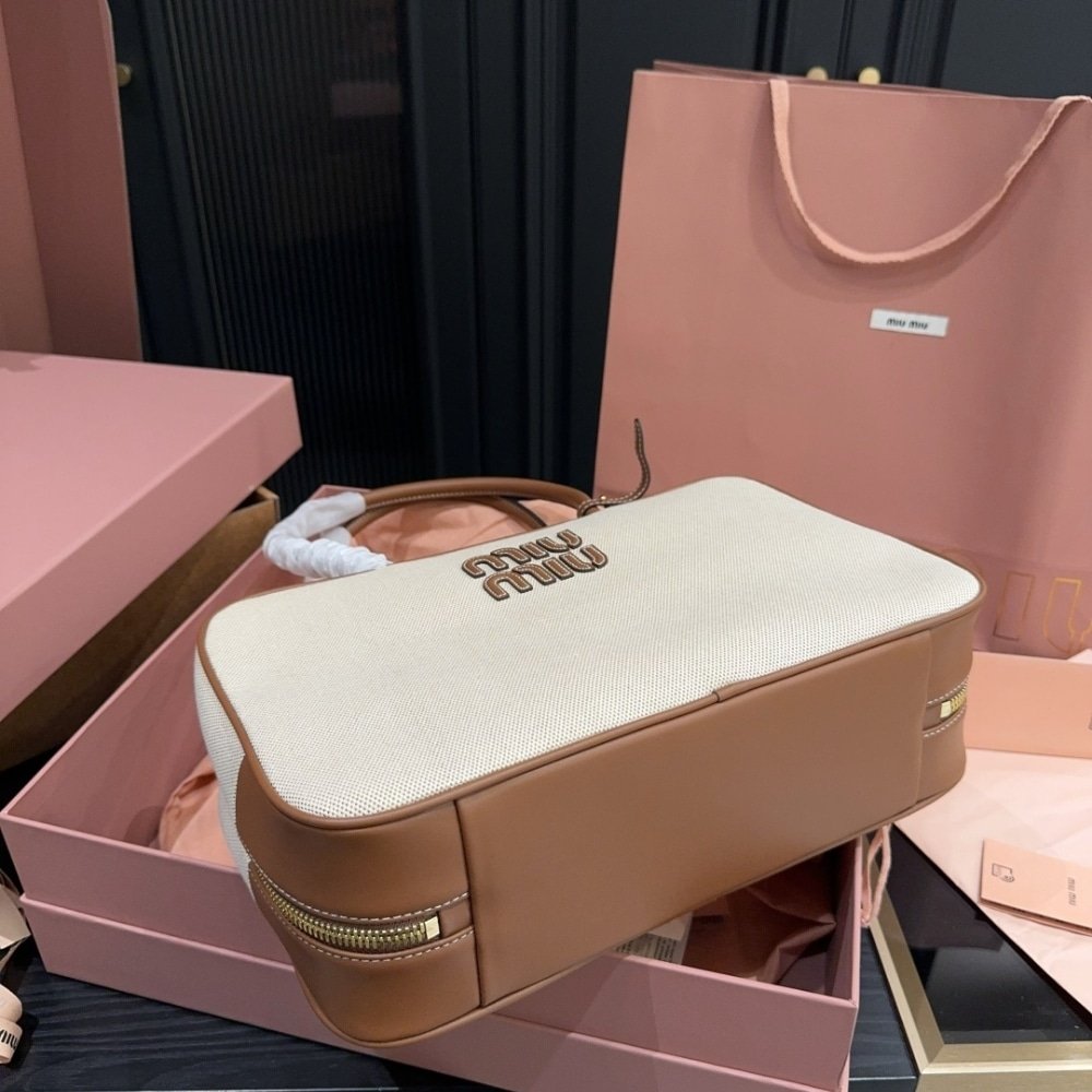 Miumiu Beau Canvas Bag Beige And Brandy 34Cm 5Bb163 Acrn F062F V Ooo