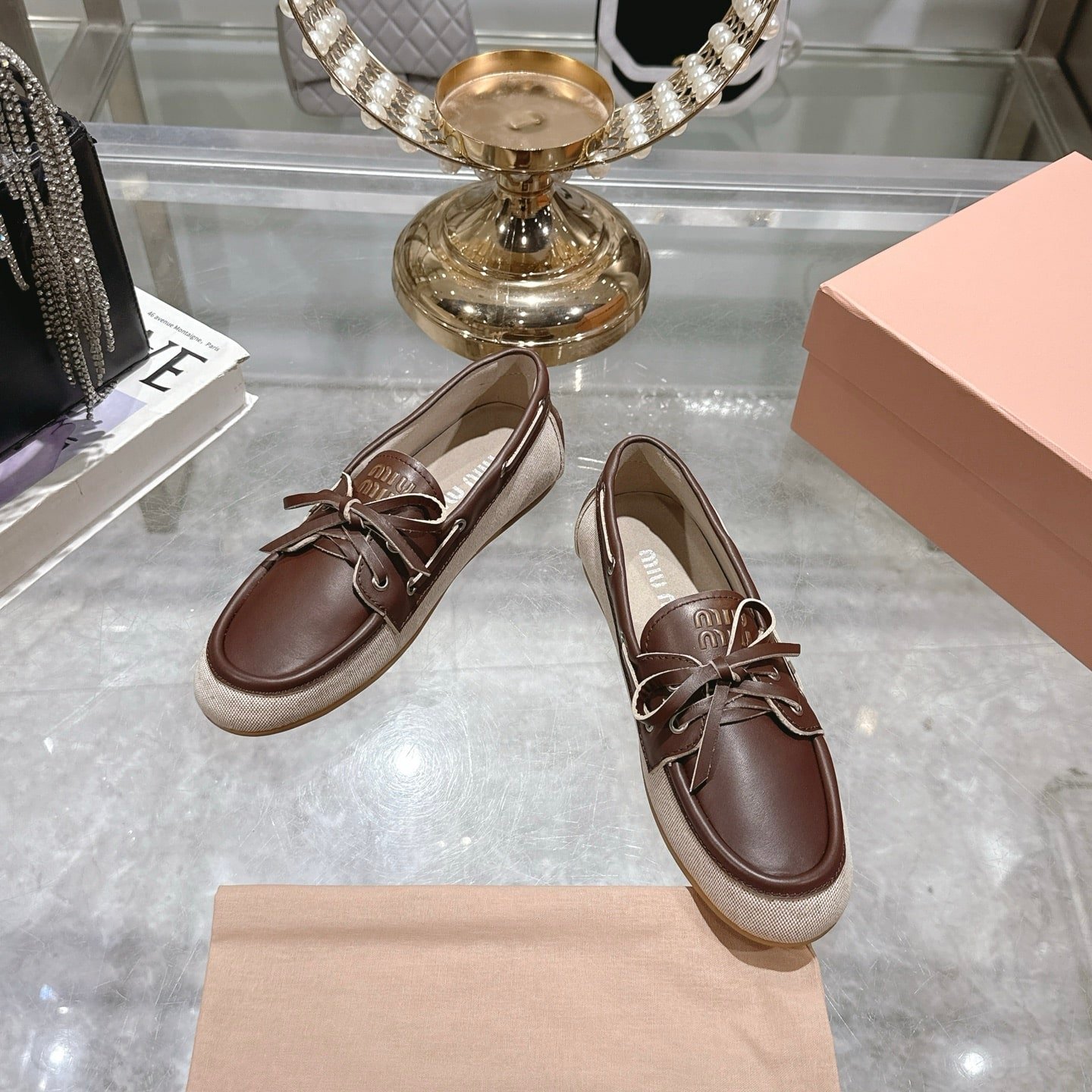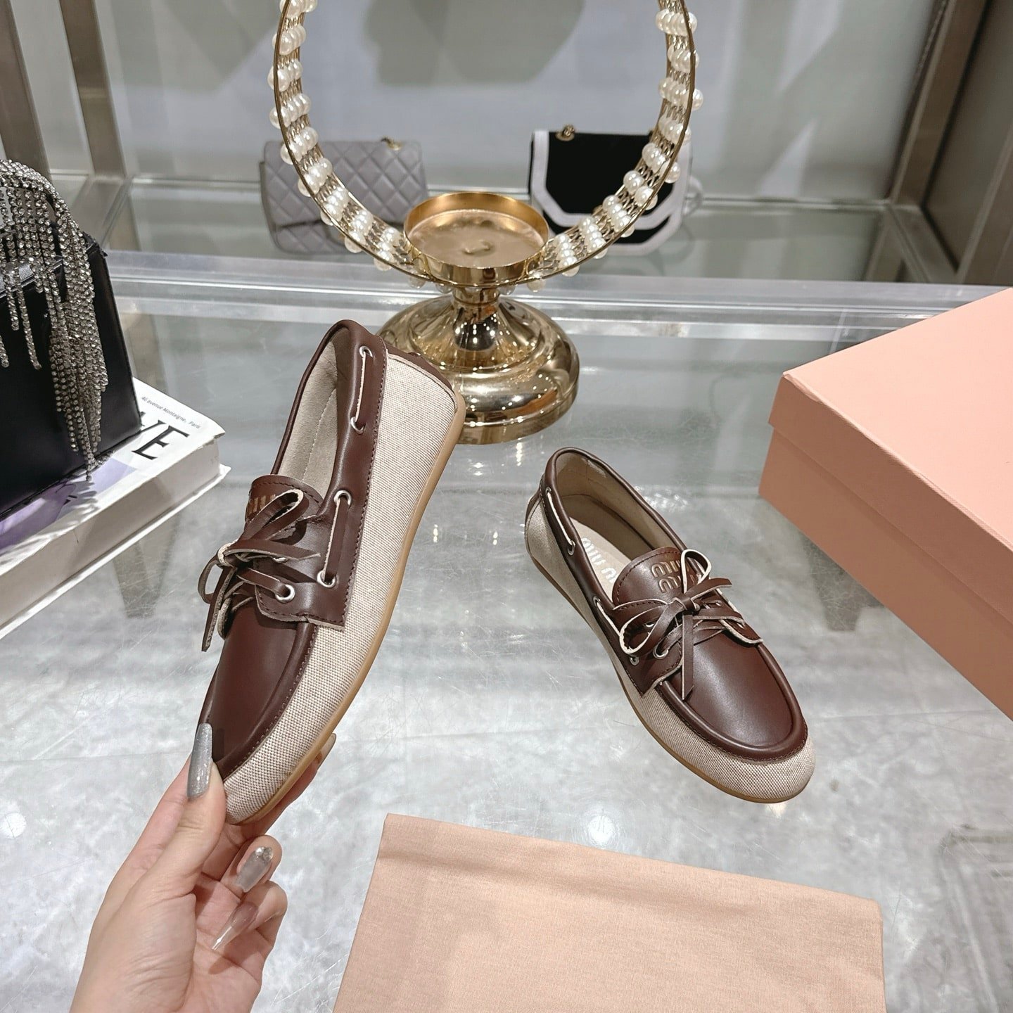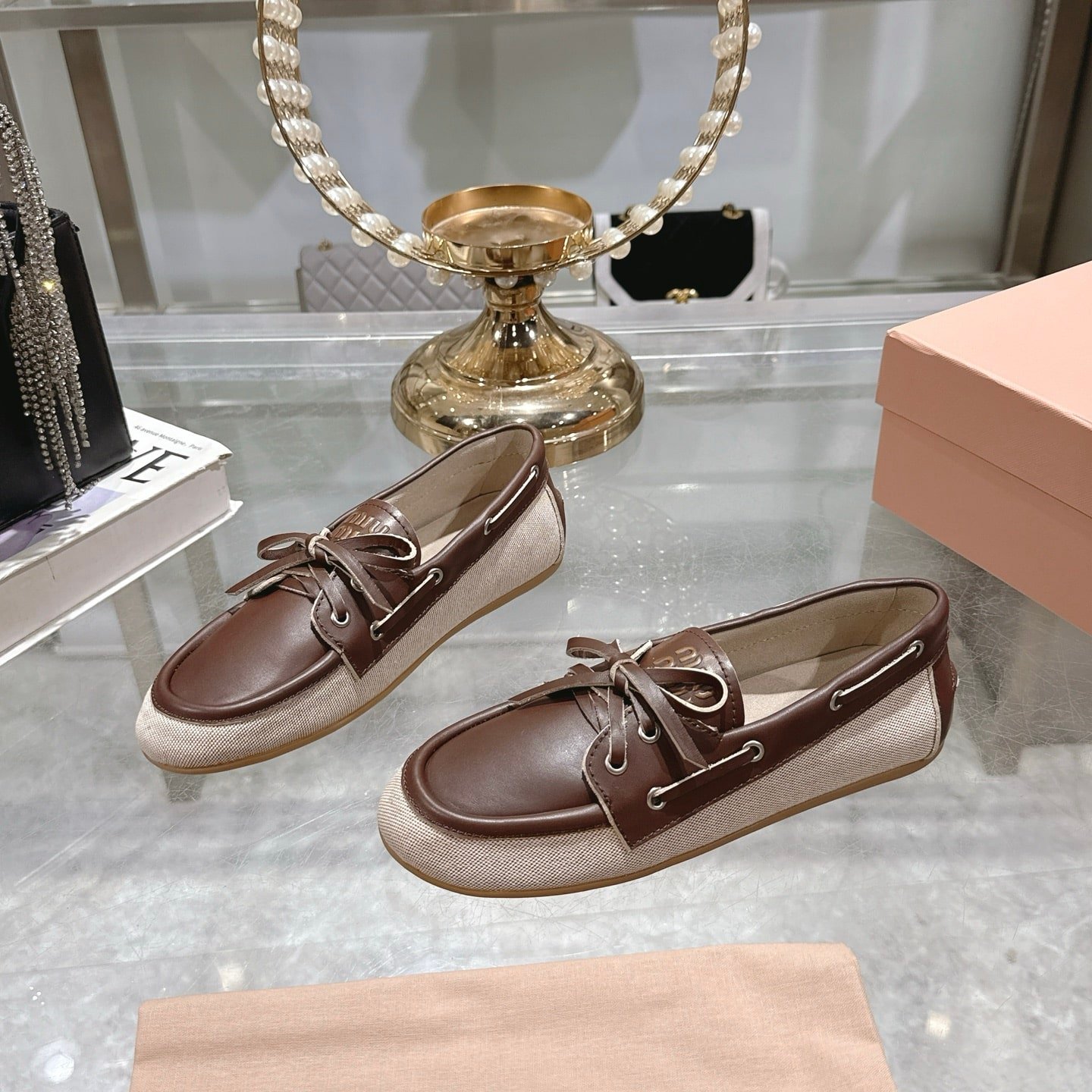 Miumiu Canvas And Bleached Leather Boat Shoes Beige 5D376E 3Lqm F0J51 F 005