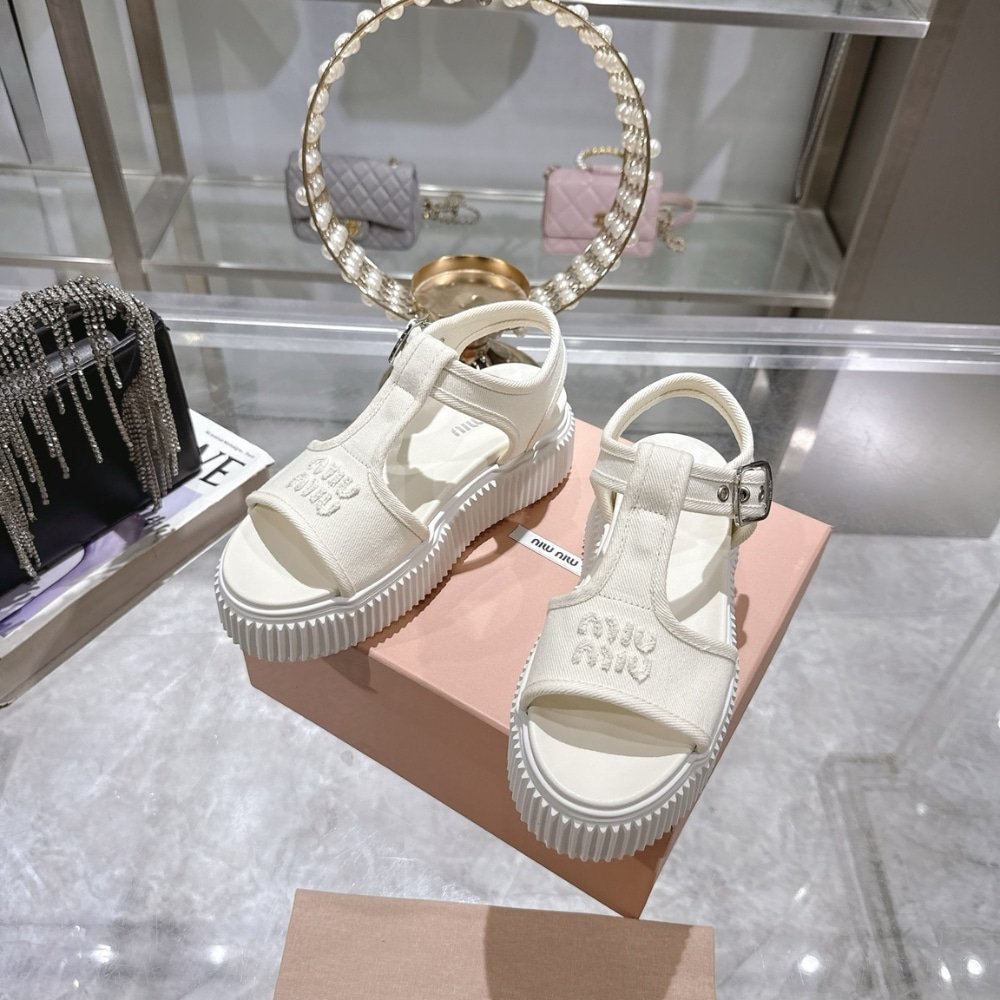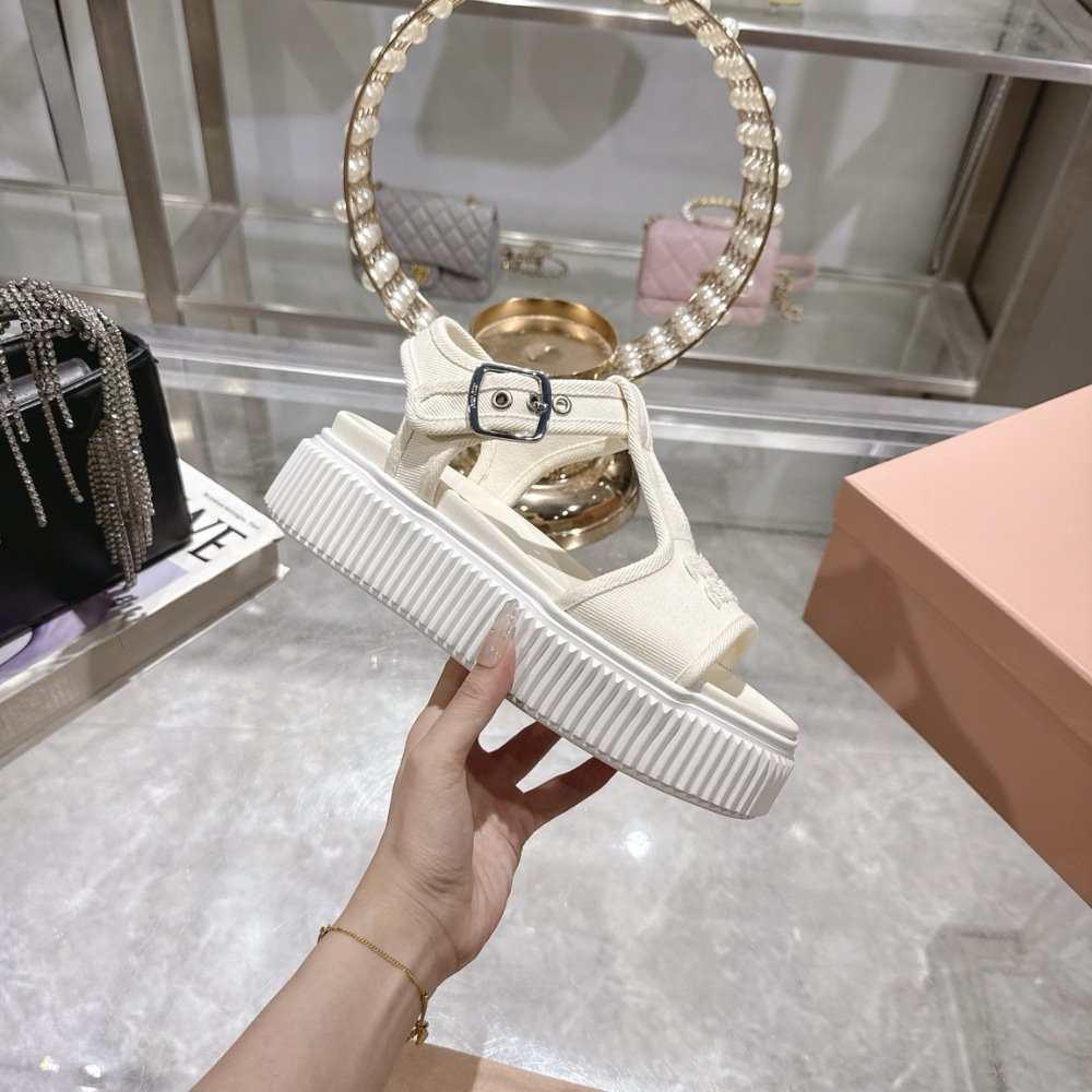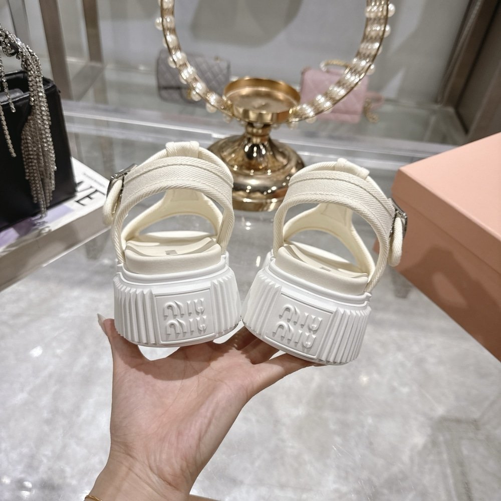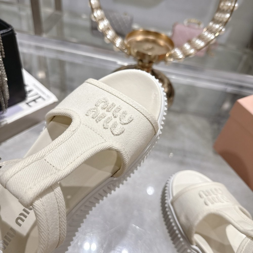 Miumiu Denim Flatform Sandals Ivory 5X402E Csl F0304 F 045