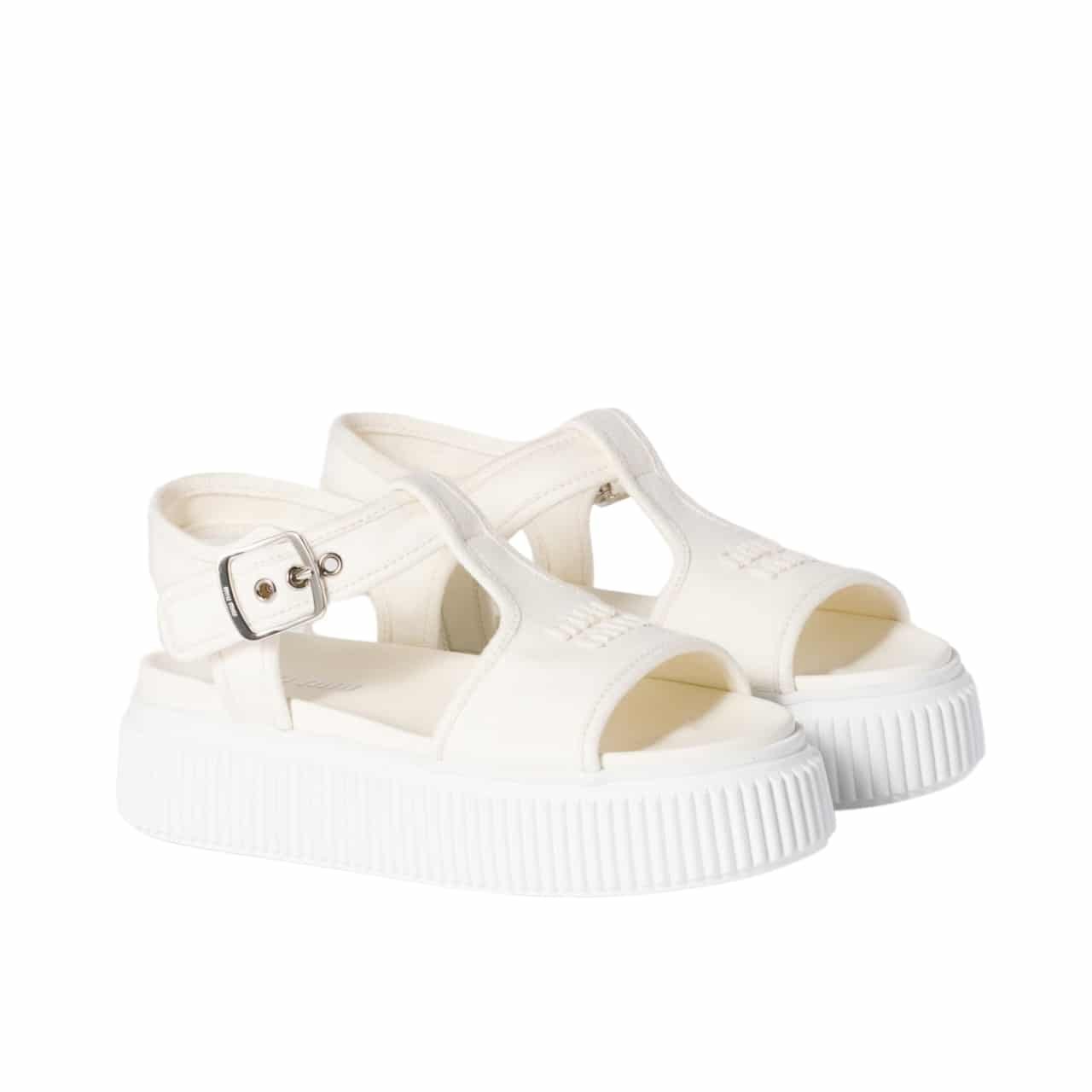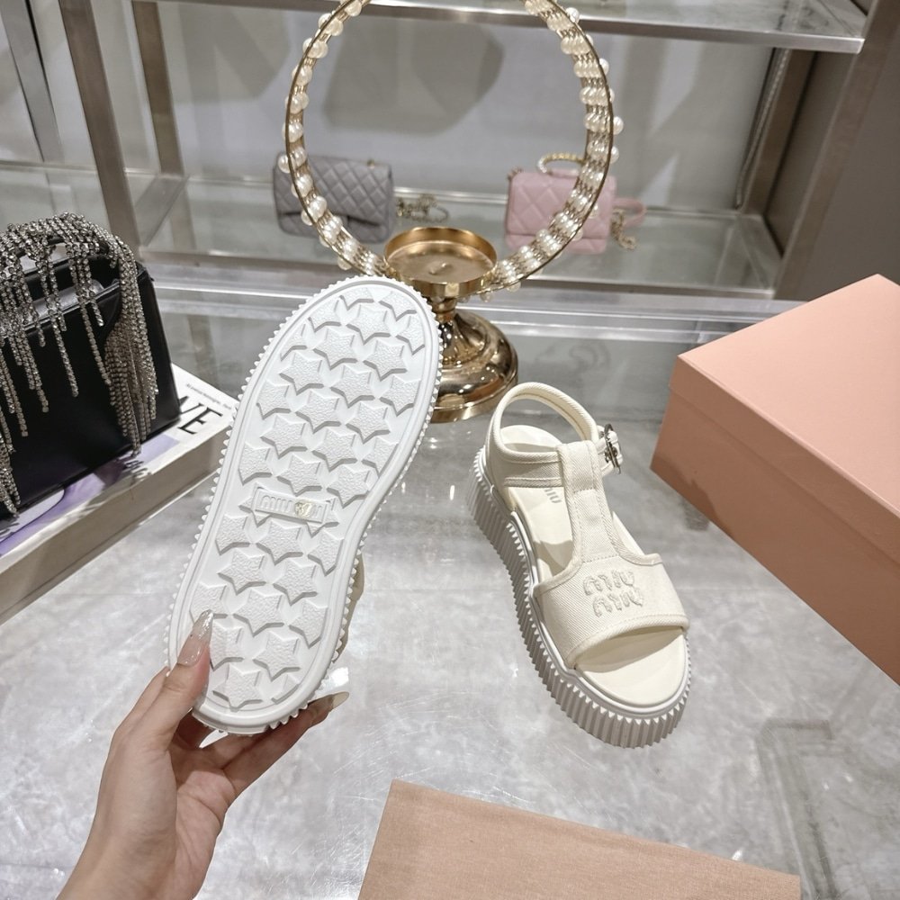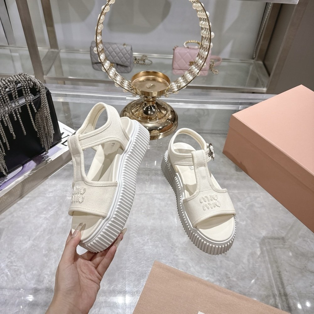 Miumiu Denim Flatform Sandals Ivory 5X402E Csl F0304 F 045