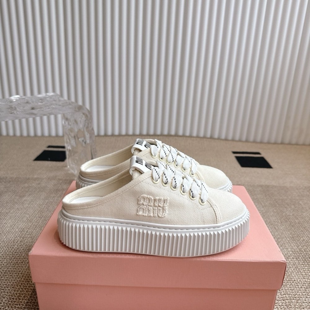 Miumiu Denim Sneaker Mules Ivory 5E390E 3Ars F0304 F 005
