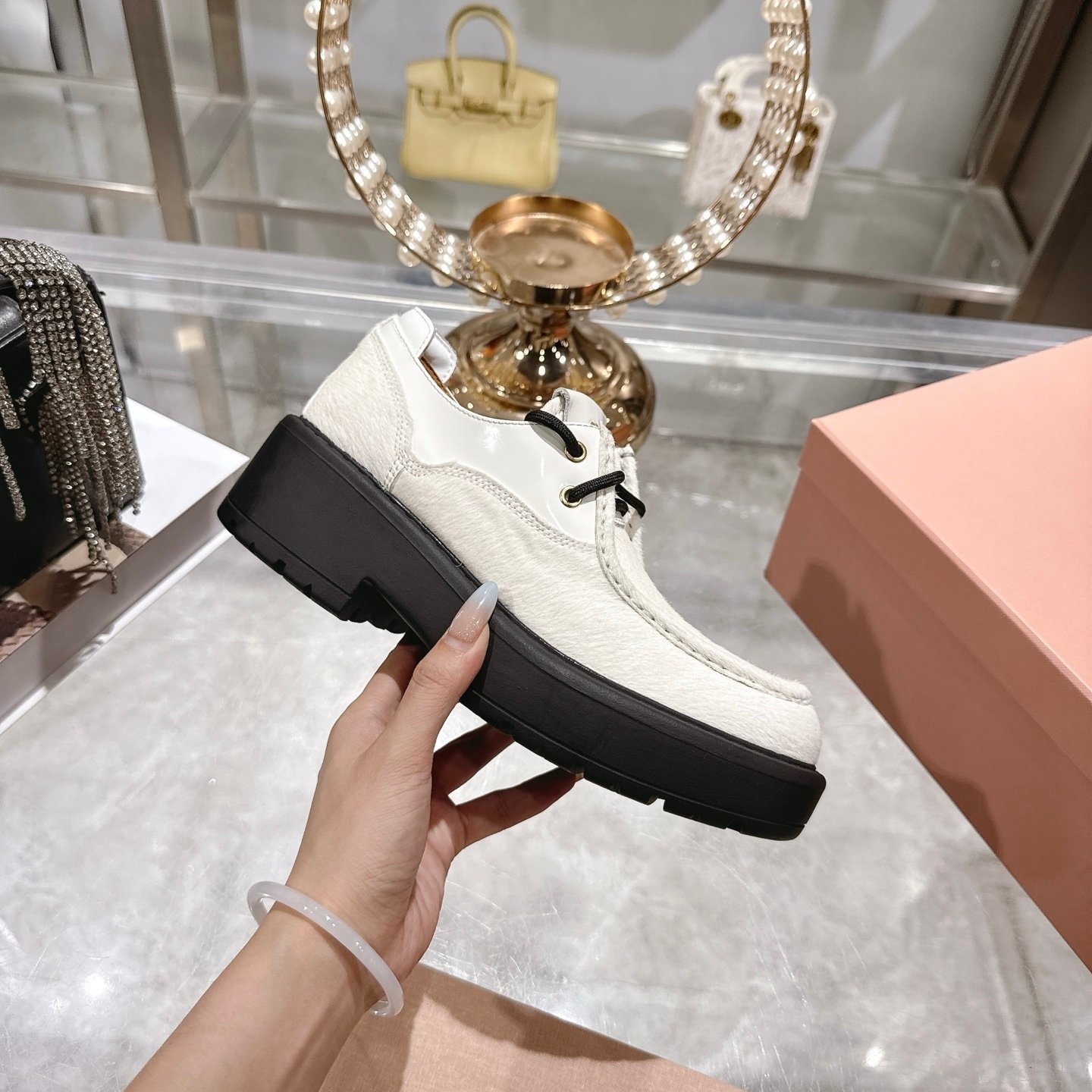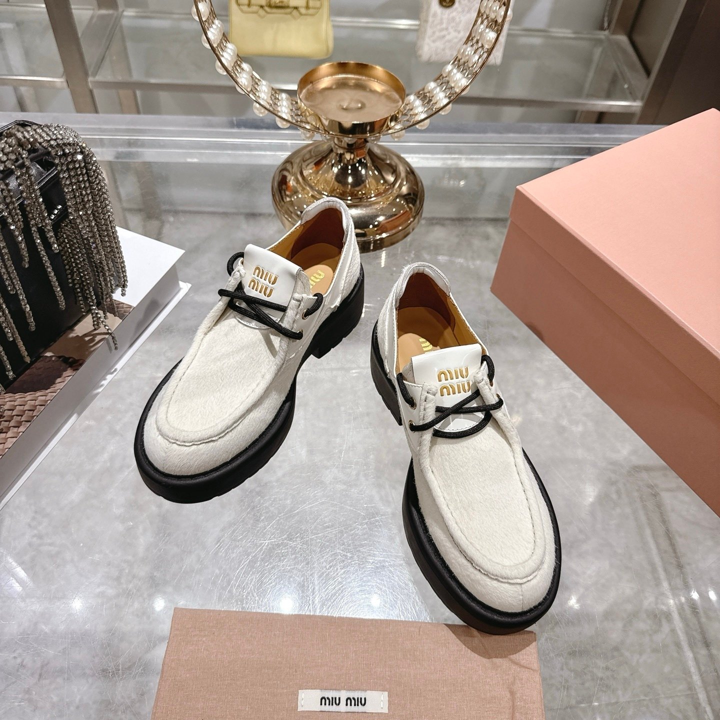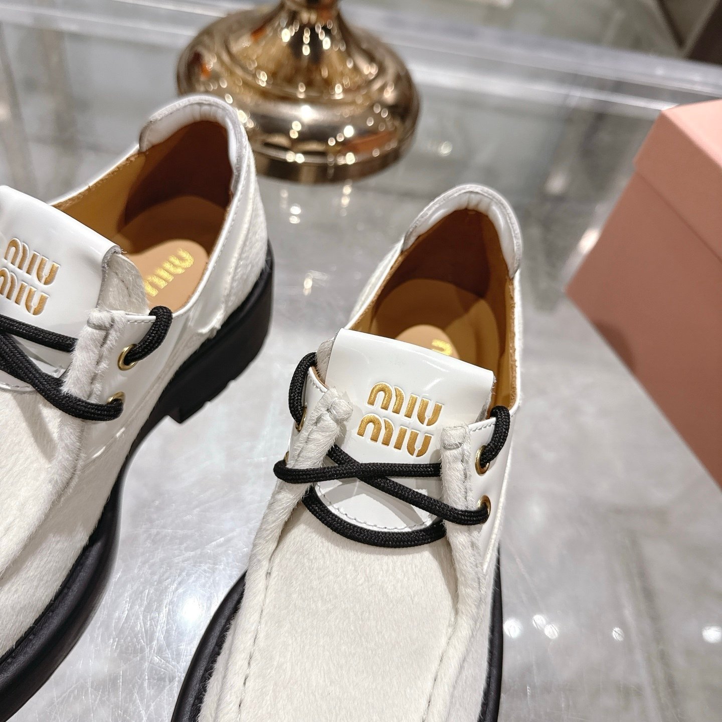 Miumiu Leather And Calf Hair Leather Laced Shoes Ivory 5E964D 2Hio F0304 F D055