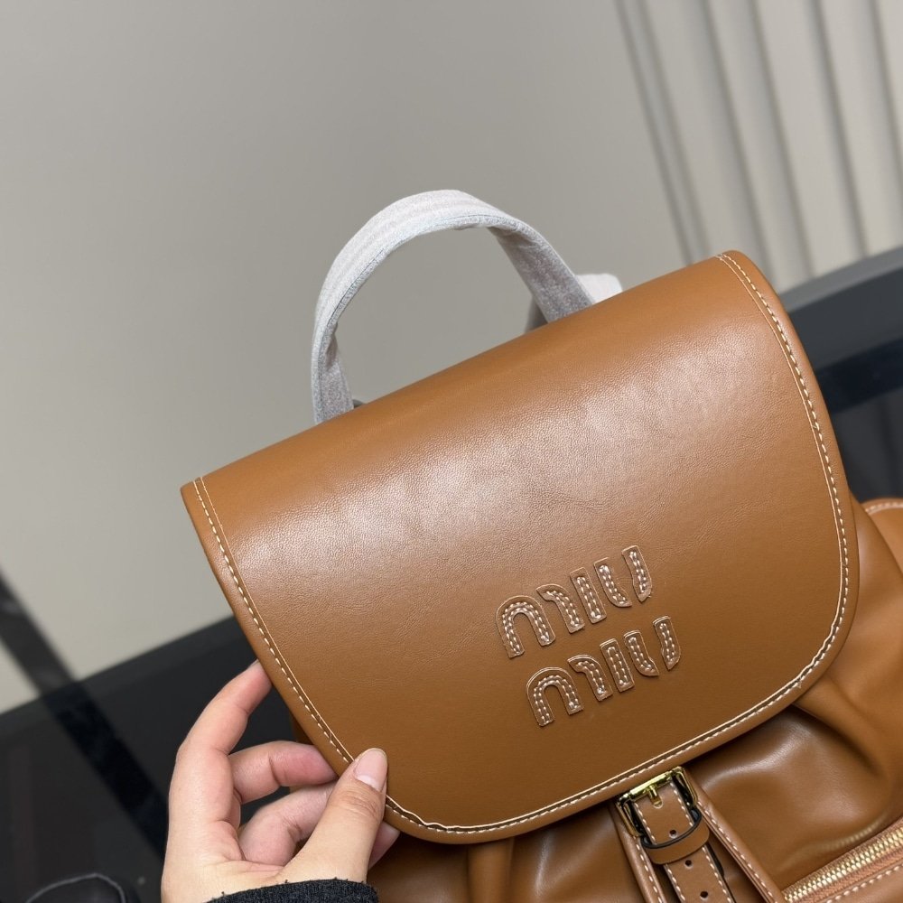 Miumiu Leather Backpack Cognac 27Cm 5Bz042 2Crw F0046 V Ooo