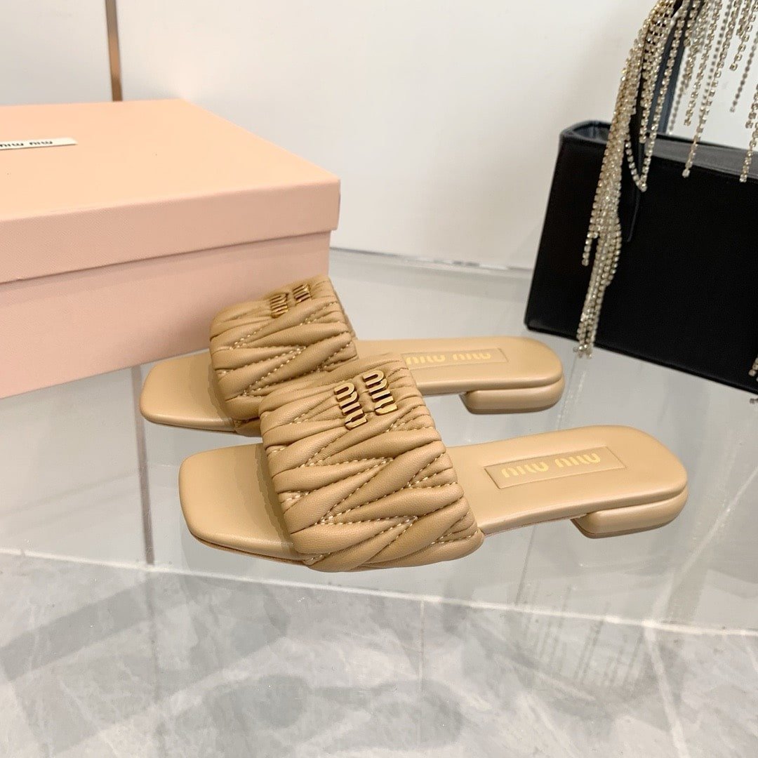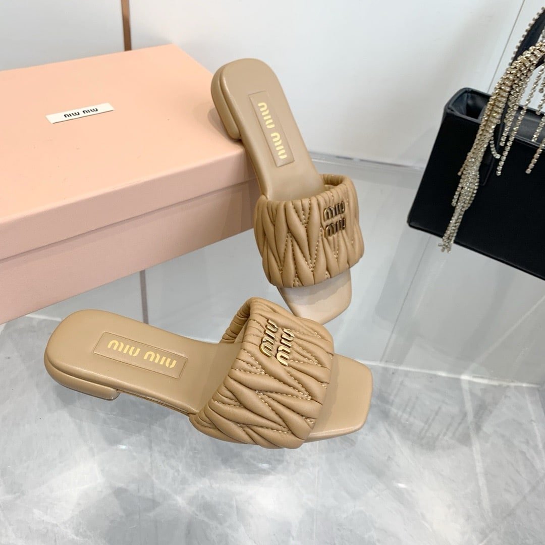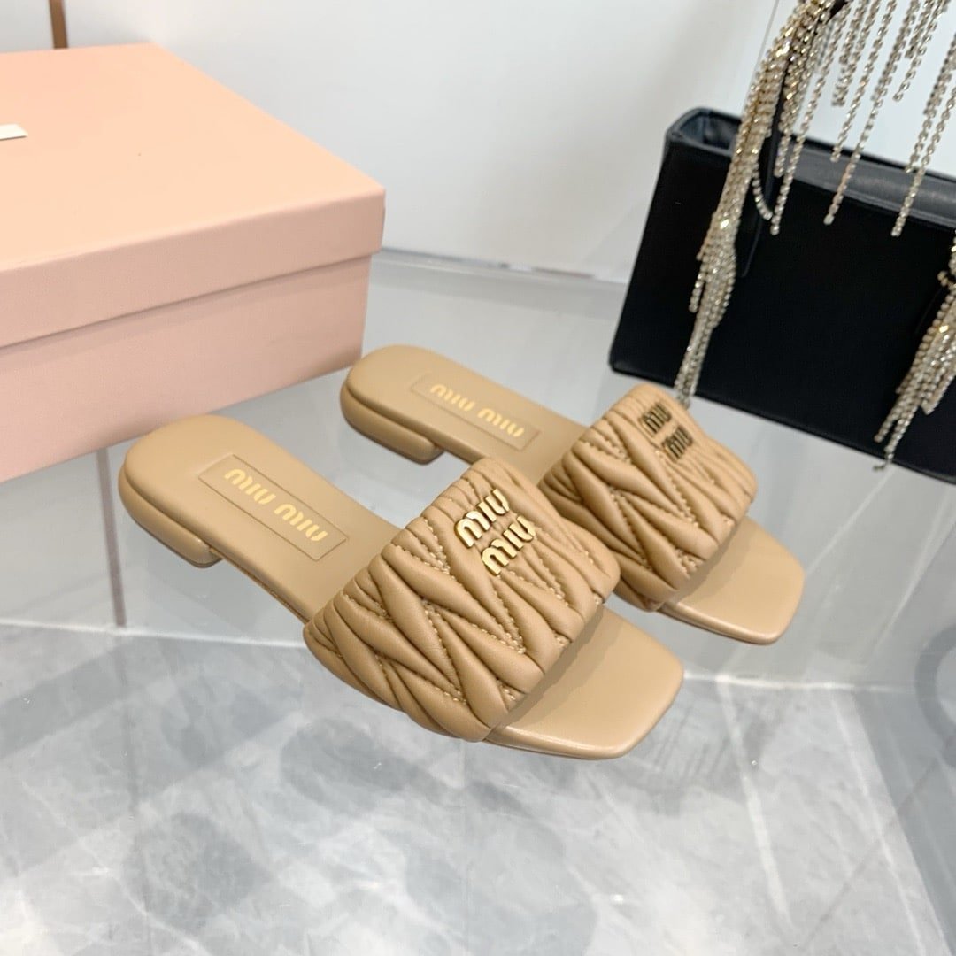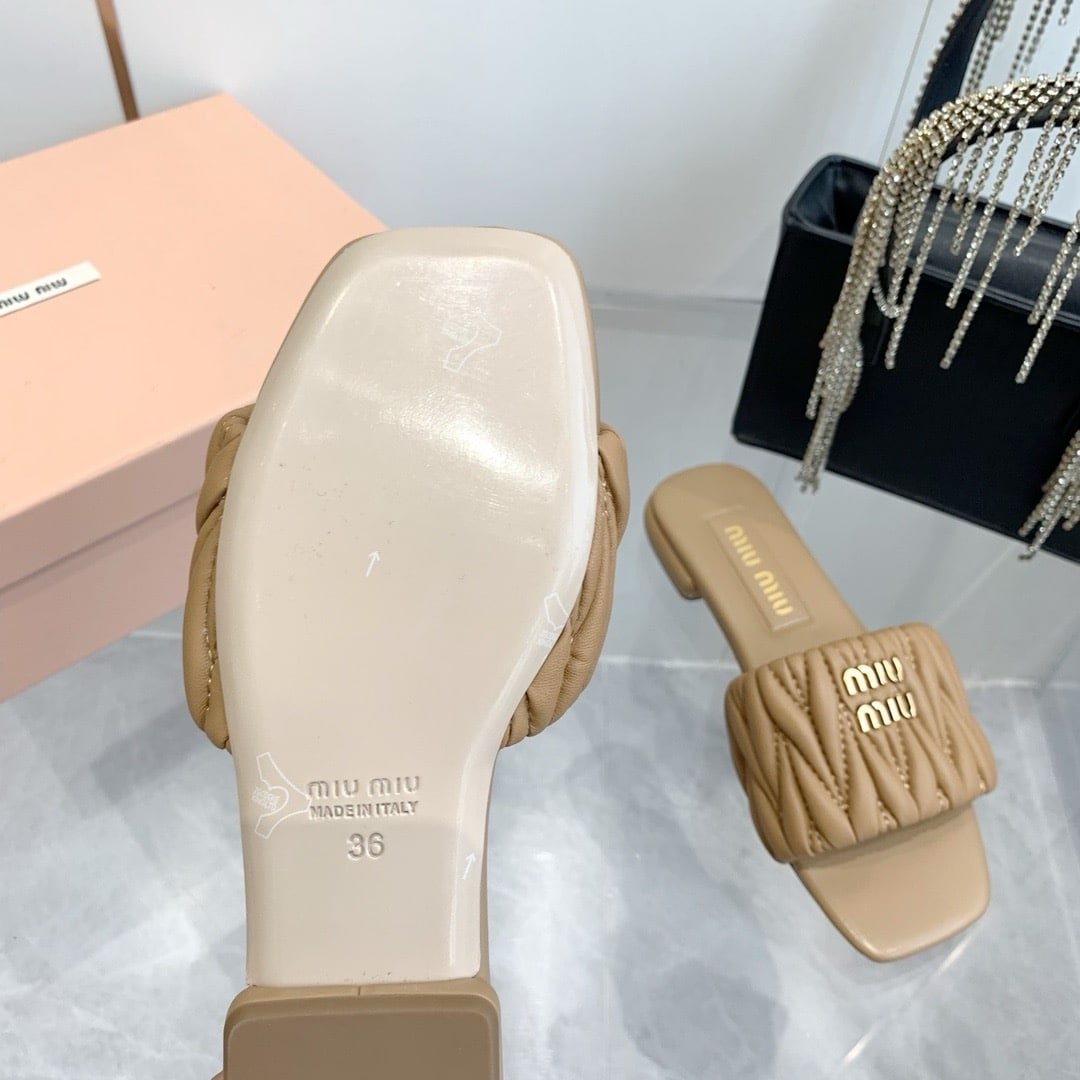 Miumiu Matelassé Nappa Leather Slides Sand Beige 5Xx605 88T F0036 F 010