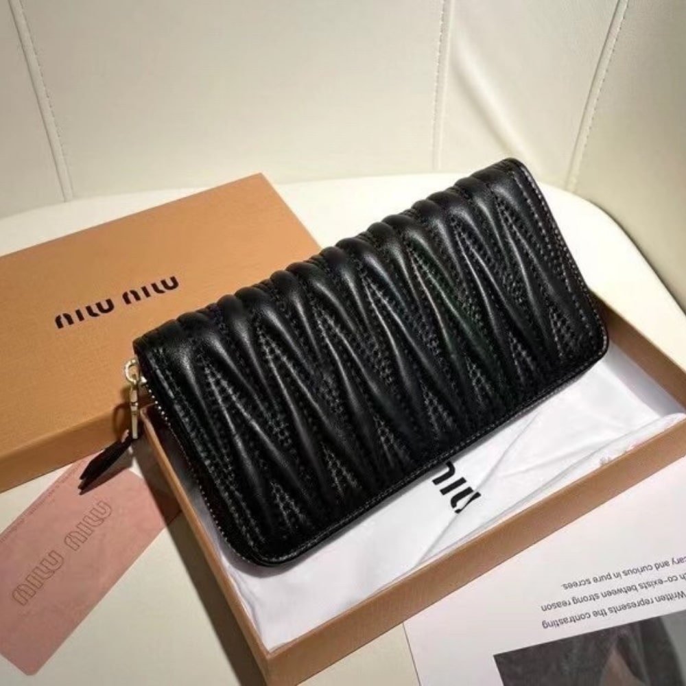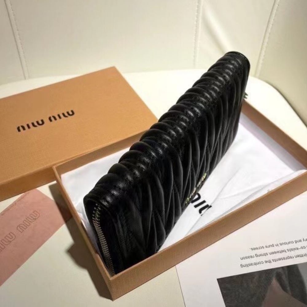 Miumiu Matelassé Nappa Wallet Black 19Cm 5Ml506 N88 F0002