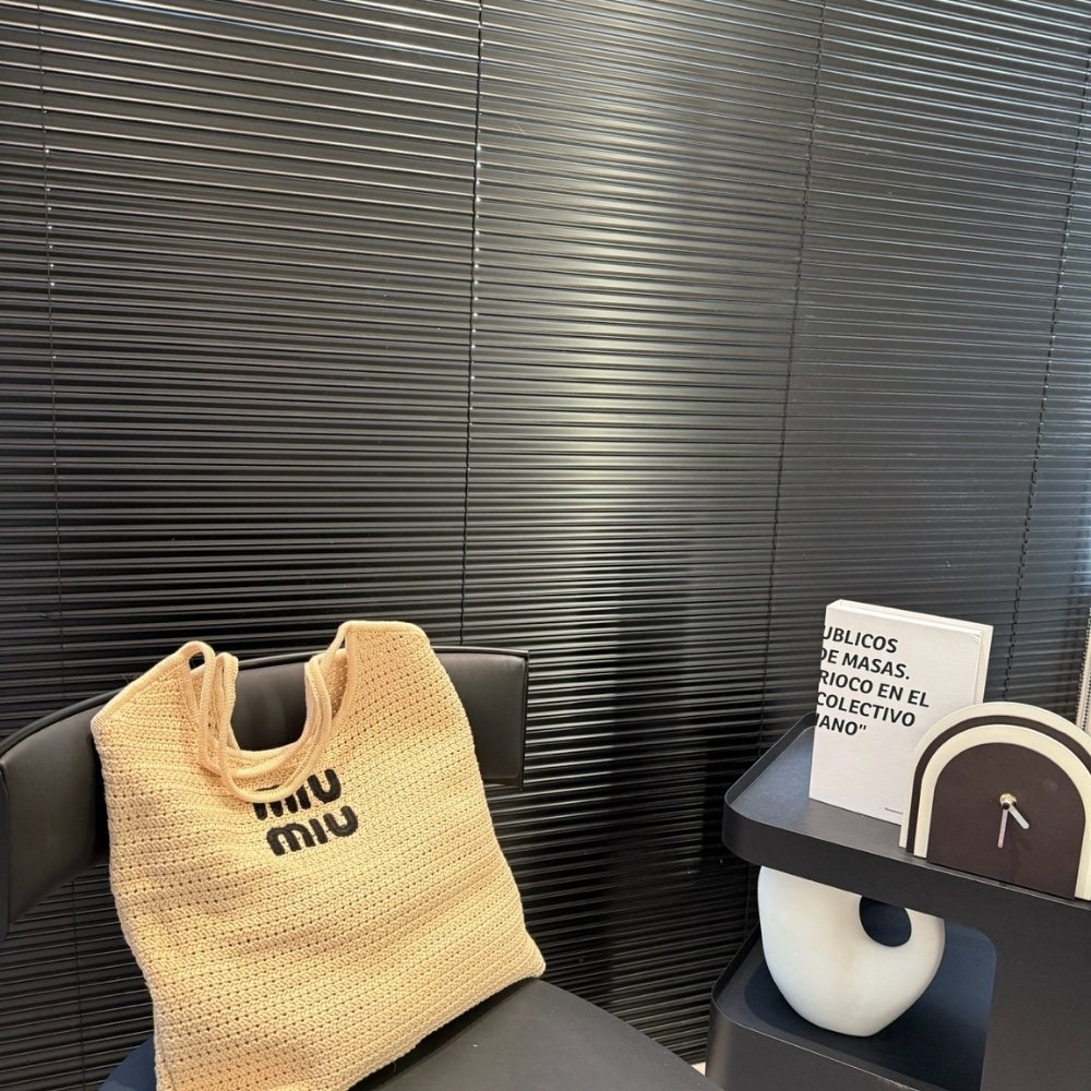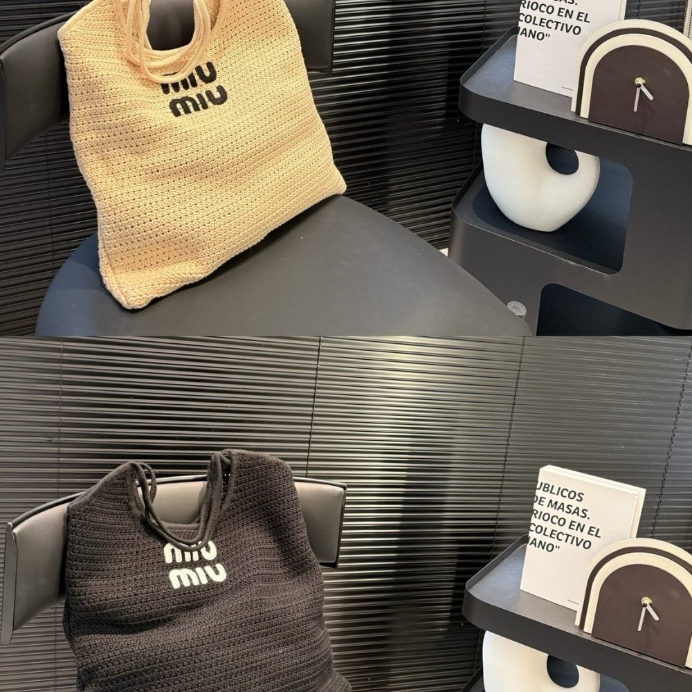 Miumiu Raffia Effect Yarn And Cotton Tote Bag Chalk White And Black 36Cm 5Bg231 2Cqy F0N13 V Mro