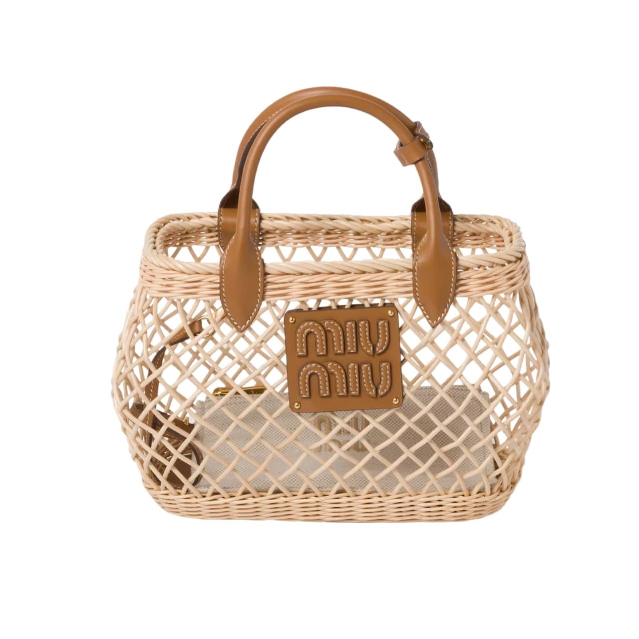 Miumiu Woven Fabric Handbag Tan And Caramel 25Cm 5Ba286 2Cqv F0Kfz V Ooo