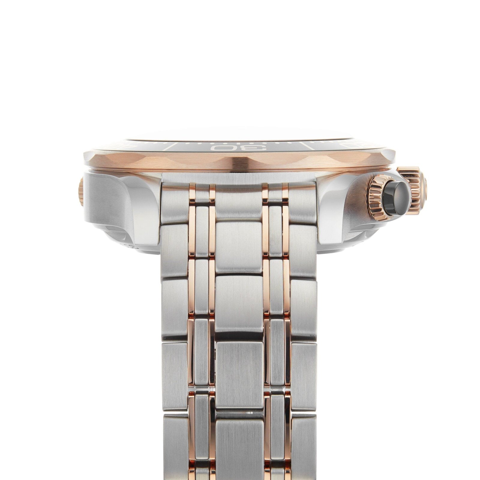A tribute to Omega’s ocean heritage Master Chronometer certification from METAS A 44mm 18K Sedna™ gold case with a two-tone bracelet Polished black ceramic dial with laser engraved waves Powered by the 9900 calibre movement for impeccable precision OCEAN HERITAGE Paying tribute to Omega’s ocean heritage, the Seamaster Planet Ocean collection features Master Chronometer certification, advanced designs and water resistance to 300 metres. Designed for use underwater, the Pro Diver collection includes co-axial escapement for long-lasting precision, a silicon balance spring for superior anti-magnetism, and a newly designed helium escape valve. A DIVERS DREAM This 44mm model features an 18K Sedna™ gold case presented on a two-tone bracelet with a foldover clasp. A polished black bezel with a diving scale frames the black ceramic dial, organised with 18K Sedna™ gold hands and white Super- LumiNova indexes. The 9900 calibre movement certified by METAS powers this Master Chronometer.