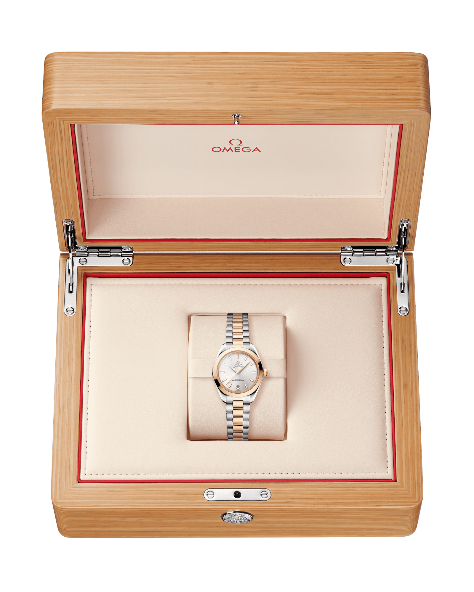 The watch is presented on an integrated stainless steel and 18K Moonshine™ Gold bracelet with beautifully rounded polished-brushed links, a foldover butterfly clasp, and OMEGA’s easy comfort-adjustment system.