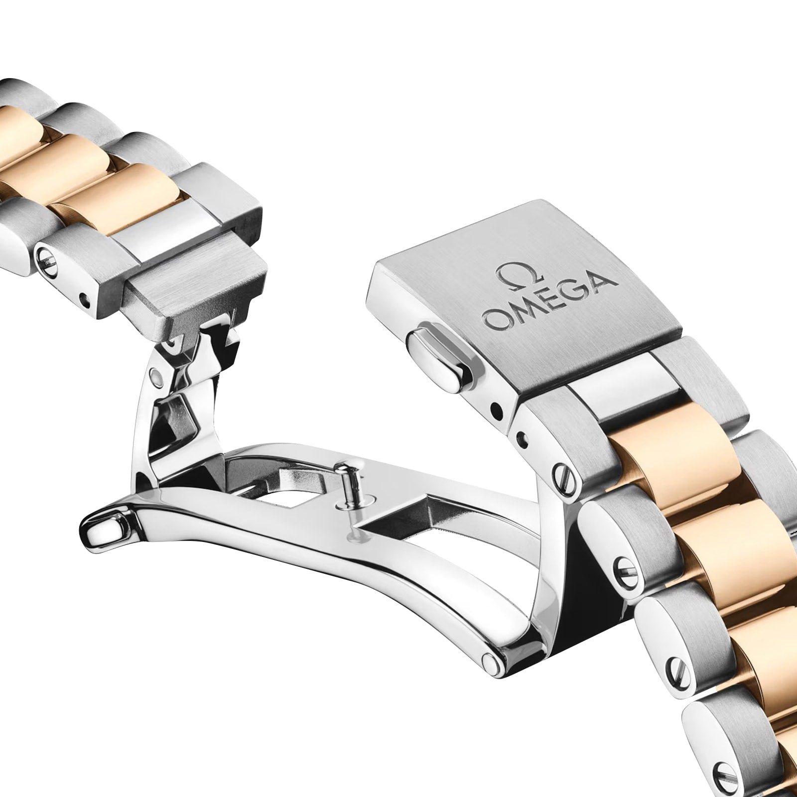 The Seamaster Aqua Terra is a superb tribute to OMEGA’s rich maritime heritage. This 38 mm model has a symmetrical stainless-steel and 18K Moonshine™ Gold case with a screw-in caseback featuring a wave-edged design. Its sun-brushed tinted lacquer burgundy dial, with black gradient effect, has an 18K Moonshine™ Gold OMEGA logo, and date window at 6 o’clock. The hands and hour markers, also in 18K Moonshine™ Gold, are filled with white Super-LumiNova which emits a blue glow. The watch is presented on an integrated bracelet with polished central links and brushed external links and powered by OMEGA’s Co-Axial Master Chronometer calibre 8800, certified at the industry’s highest standard by the Swiss Federal Institute of Metrology (METAS).