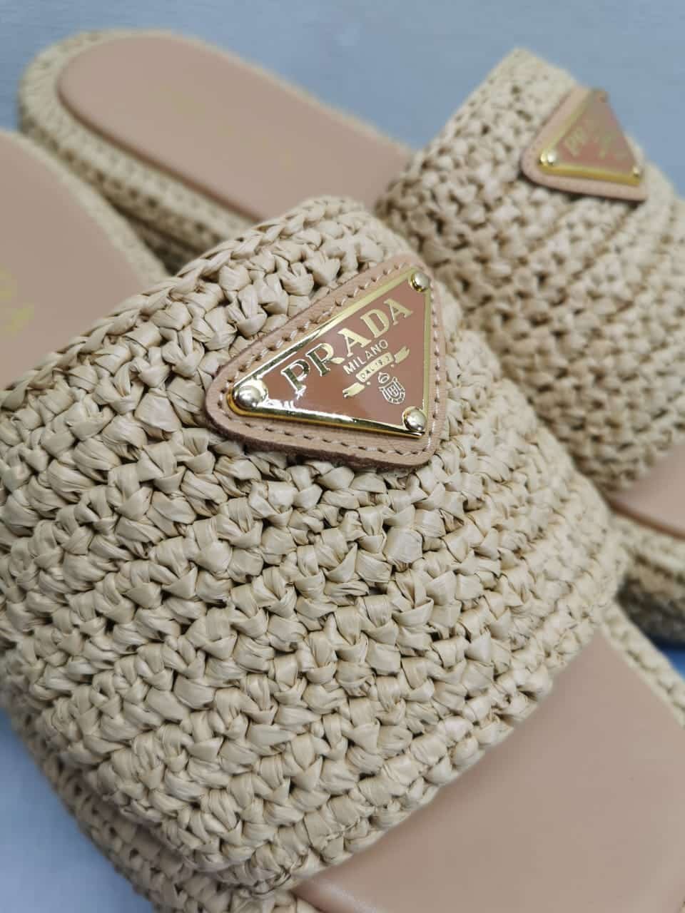 Prada Crochet Flatform Slides Natural 1Xz761 2C2T F0018 F 035