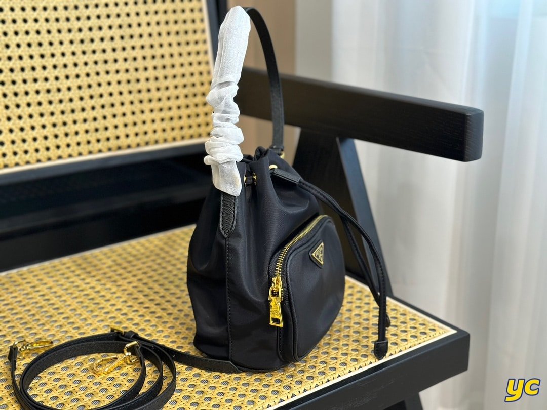 Prada Duet Re-Nylon Bucket Shoulder Bag Black 18Cm 1Bh038 Rv44 F0002Vuoo