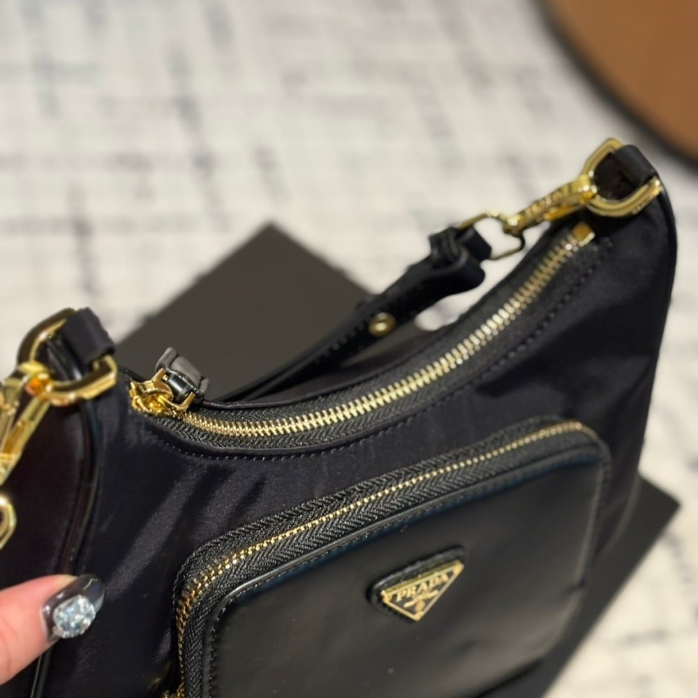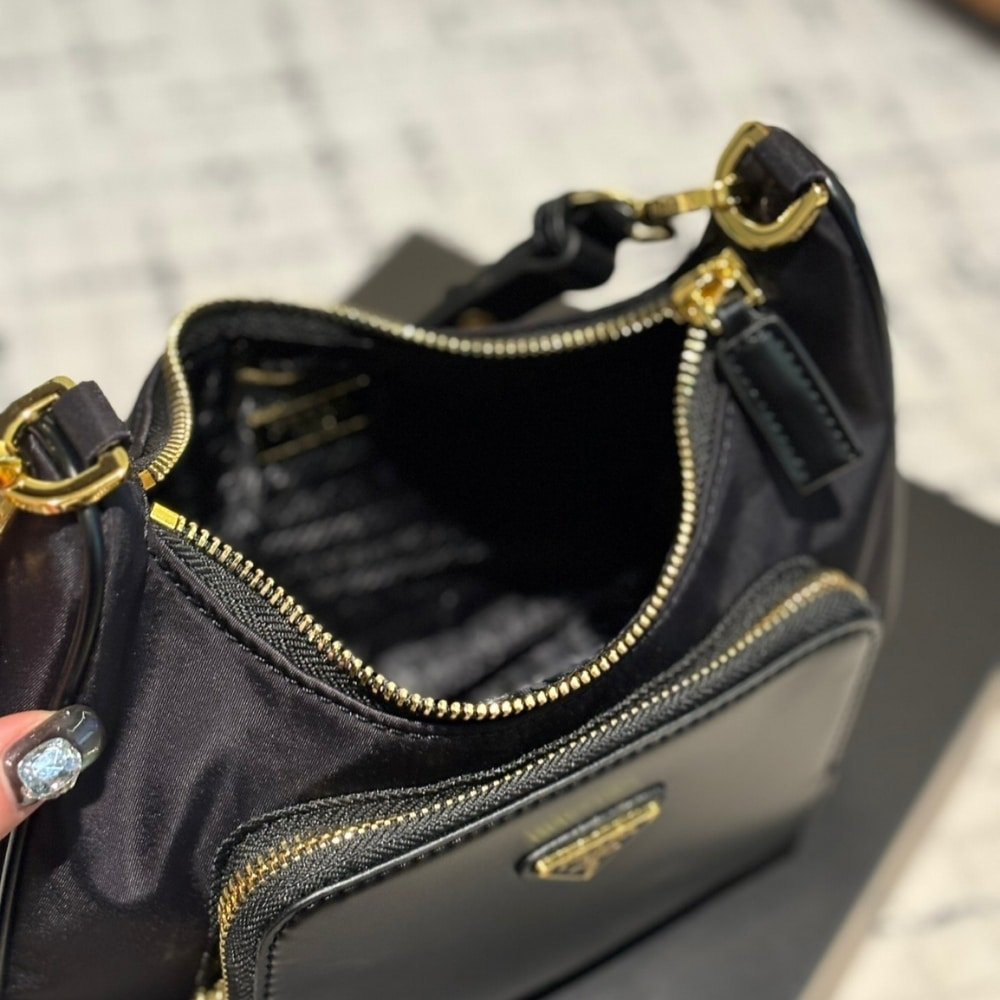 Prada Leather Pocket Re Nylon Shoulder Bag Black 22Cm
