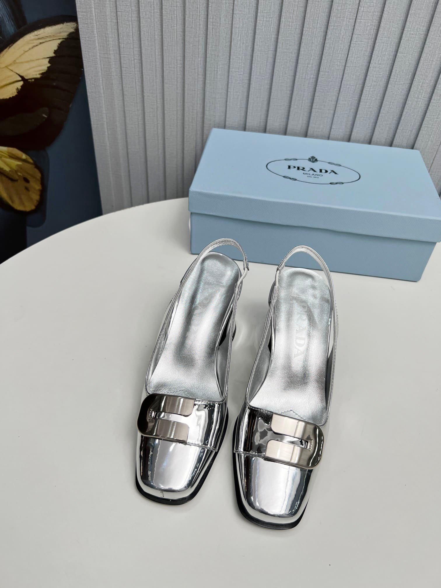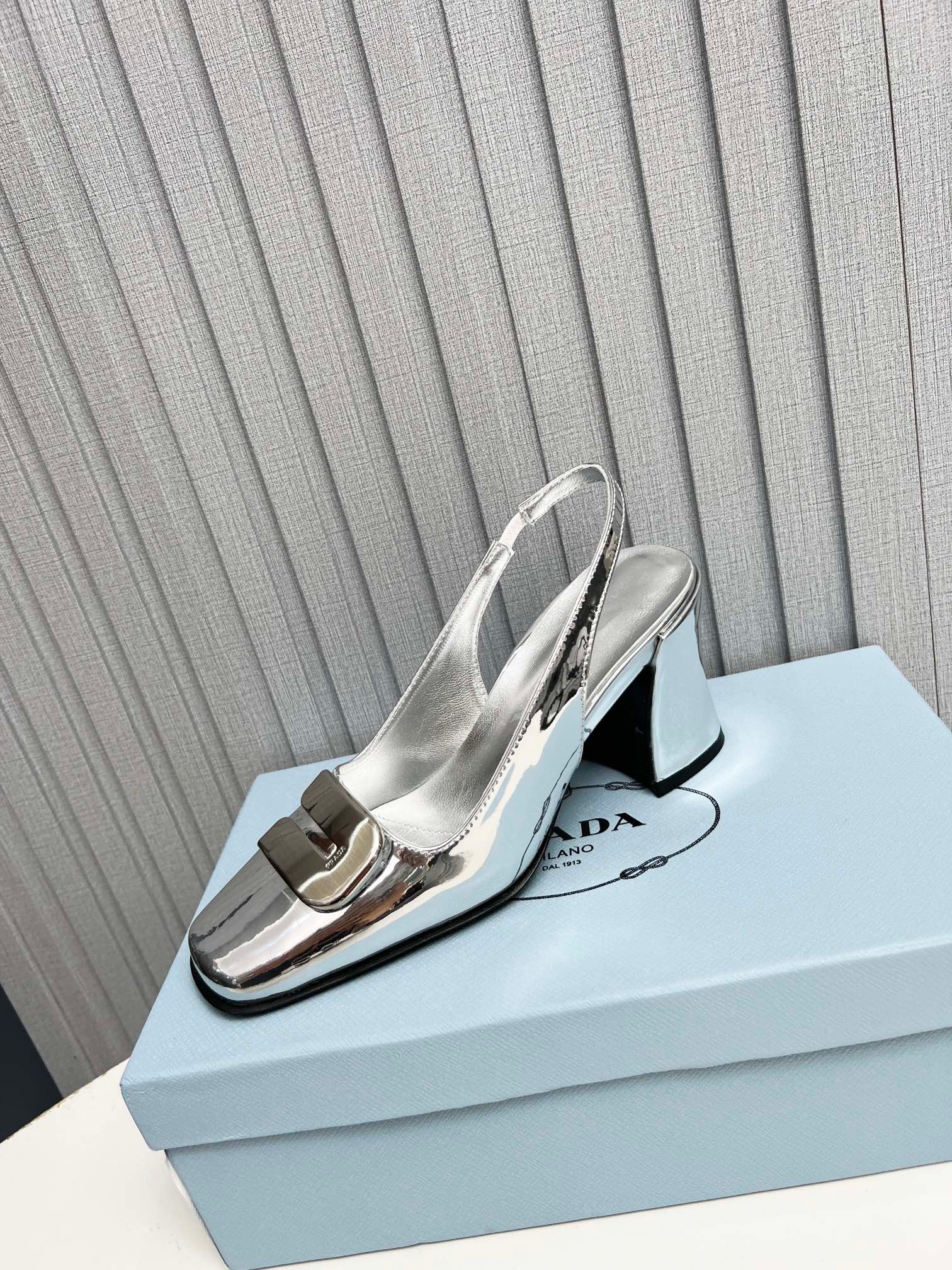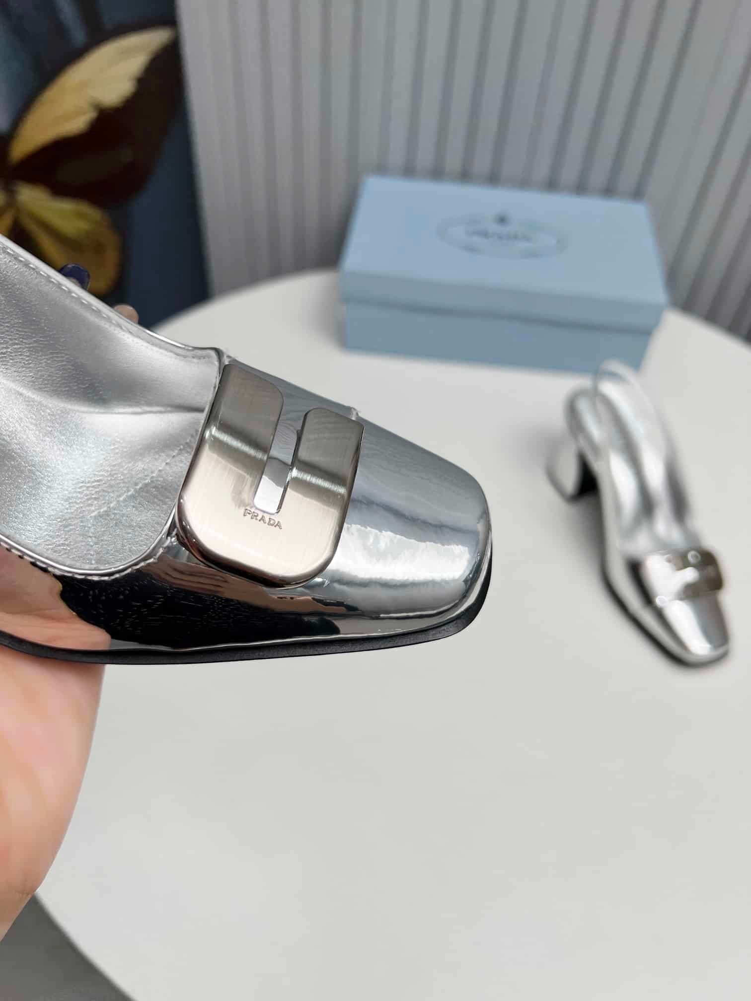 Be the first to review “Prada Leather Slingback Pumps Silver” Cancel reply